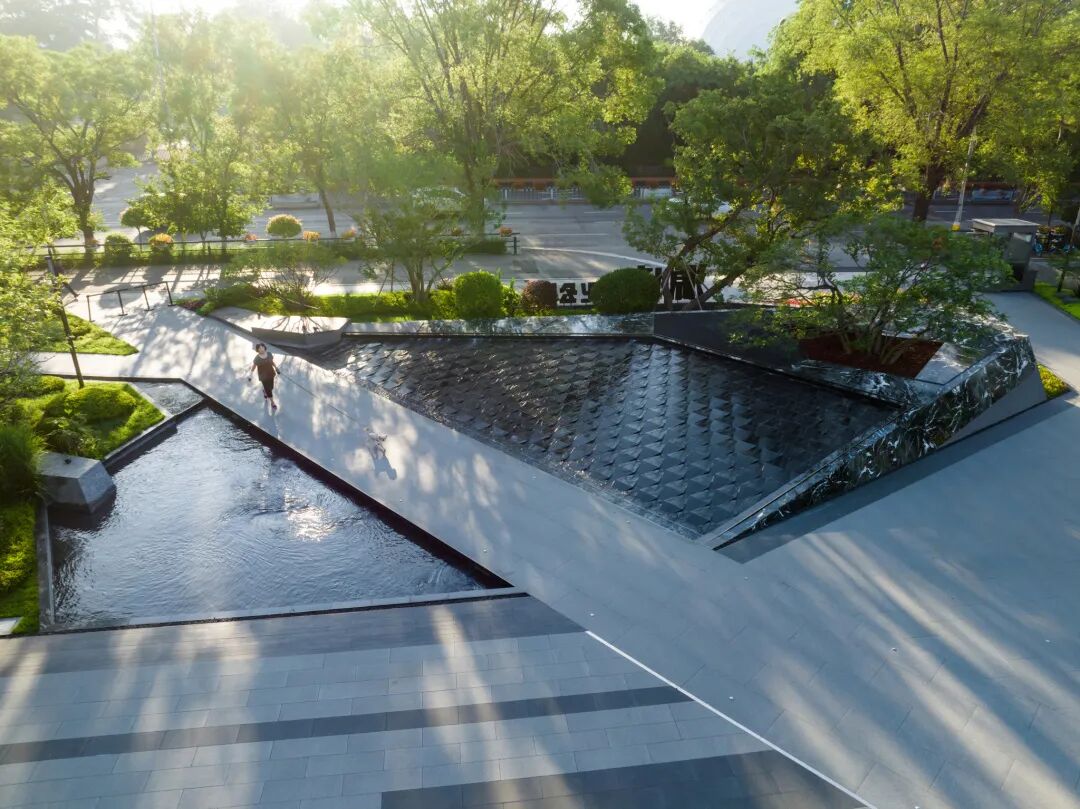 以城市书屋特色古建筑为主体,景观加以细节,前广场的仿陶器的文化铺装、两侧树池细节等,共同营造历史、古朴、庄严的神圣感,同时为广大市民提供一个集图书借阅、自修学习、公益培训等文化服务功能于一体的多元知识空间, 极大提升了区域的文化内涵与书香气息。