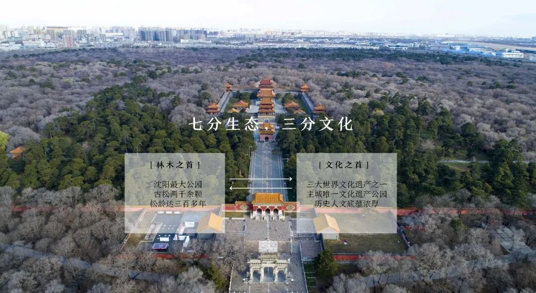 项目紧临主城区唯一的世界遗址公园——北陵公园。北陵公园身为沈阳最大的公园,地段及自然环境绝对稀缺,自然生态资源绝佳;同时也作为三大世界文遗产之一,有着极其特殊的人文历史意义,使得本项目处在一个拥有 “七分生态、三分文化”的强烈地源属性特色的基地之上,有着不可比拟的地段优势。