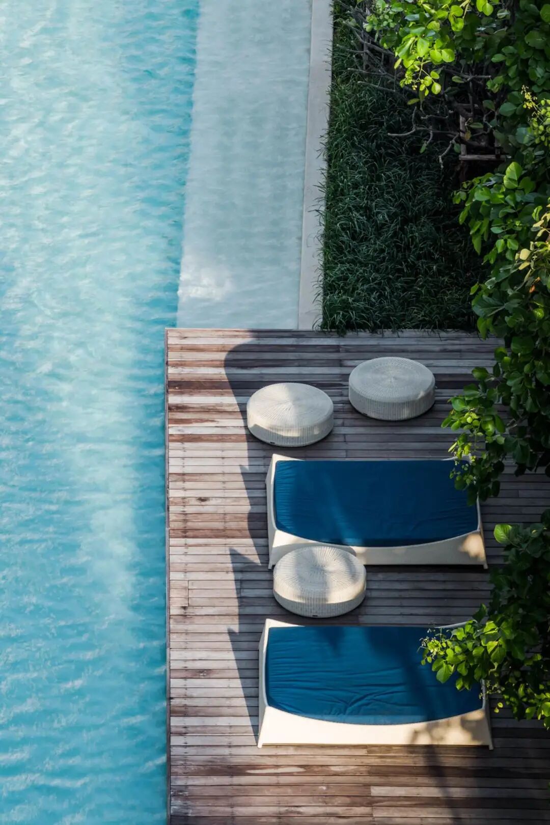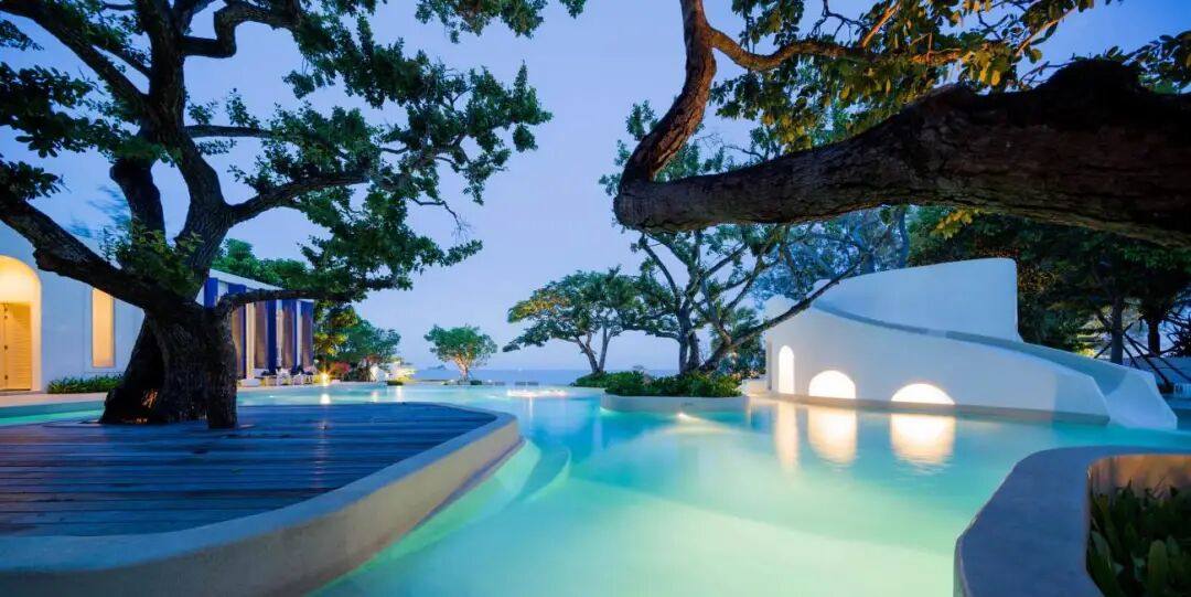 一般来说对于一个狭长的场地,面向海滩的一面只有少数的空间能直接看到海,其余的空间就必须依靠各种设计营造弥补景观的缺失。