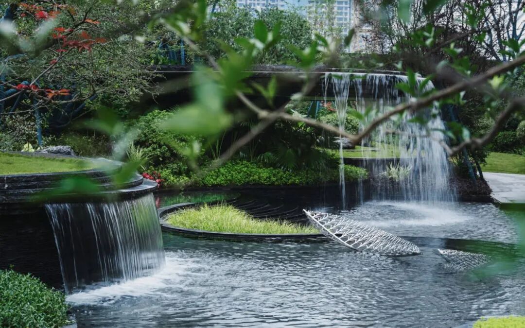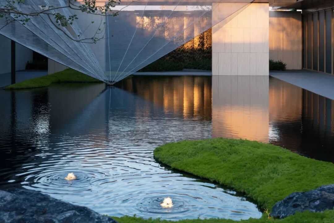 售楼处出来,来到林里枝叶间,走进大自然的光影世界。叶子造型的林下休憩平台,岸边水榭,流水潺潺。水景的多层次叠落,既具有观赏性又有可玩性。当光洒下,绿树垂影一池斑驳,生动地让人留恋。