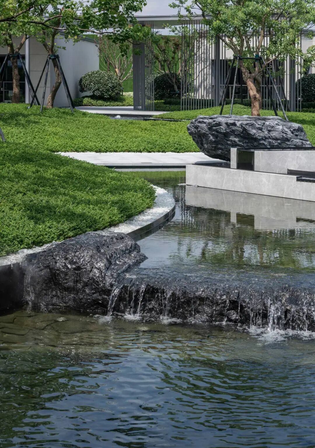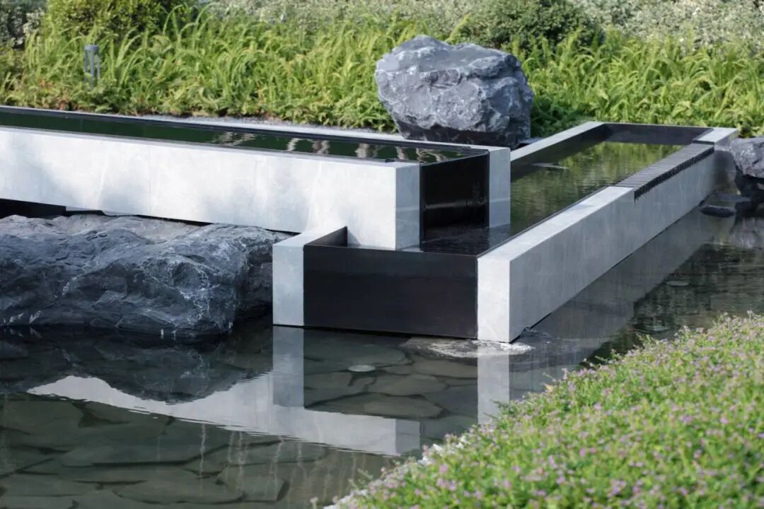 景观借助高差,引用“贾鲁河”之水,