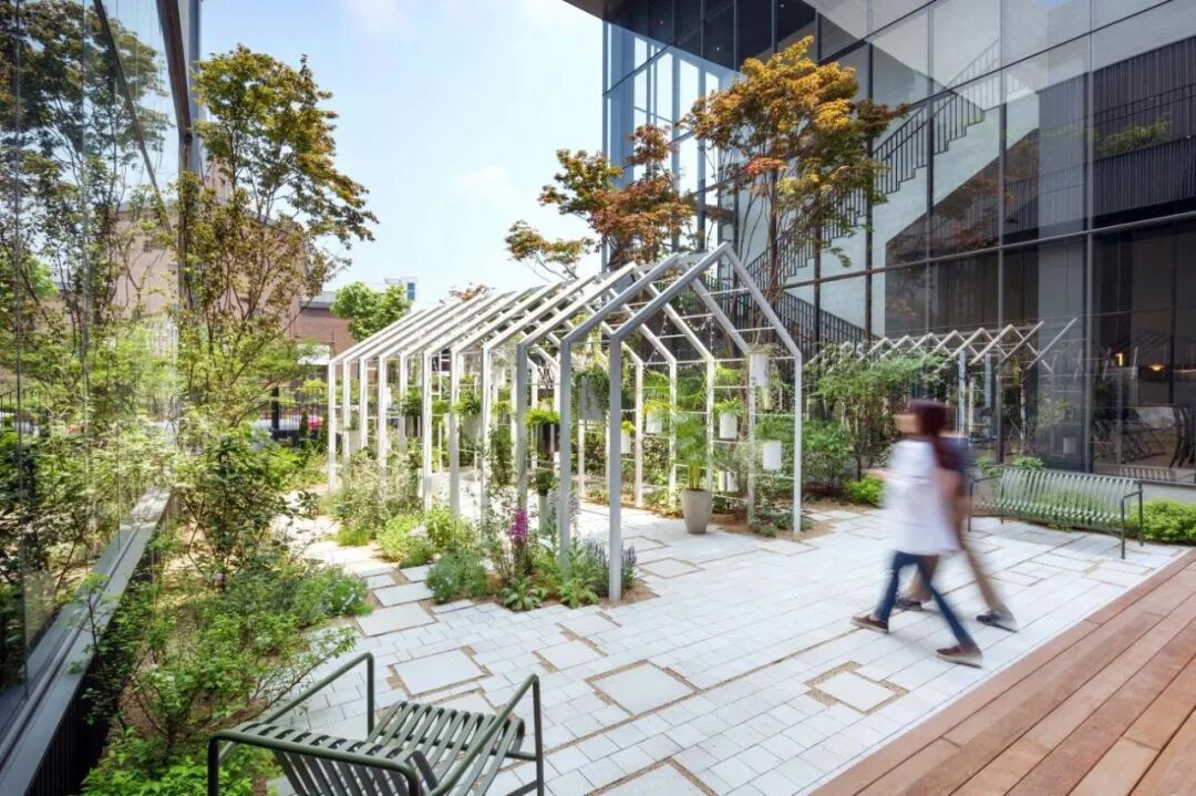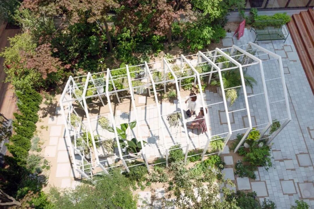 项目小森林花园让人联想到森林中的小房子,它将三种种植理念融入到一个景观项目中。在花园中间建造的房屋形状的亭子里,“空中花园”被创造出来,树叶在这里下垂。当从外面看花园时,在亭子的右侧空间,创造了灿烂的花朵盛开的“阳光花园”,在亭子的左侧空间,创造了“树荫花园”,感觉像是森林中的一条狭窄的小路。