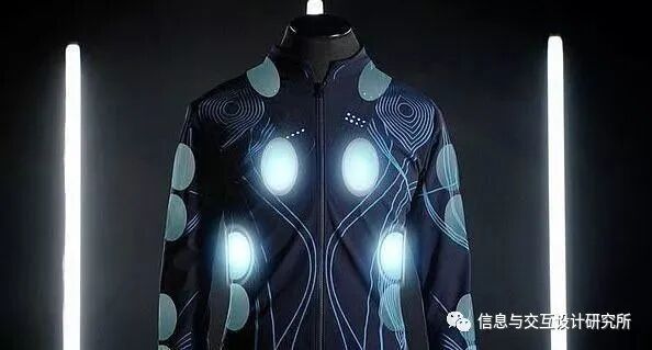 CuteCircuit在这件声音T恤上嵌入十六个传感器,将T恤与电脑系统相连,这个系统能够从不同位置的麦克风获取音频,然后再将音频传遍全身,为穿着者提供一种沉浸式体验。