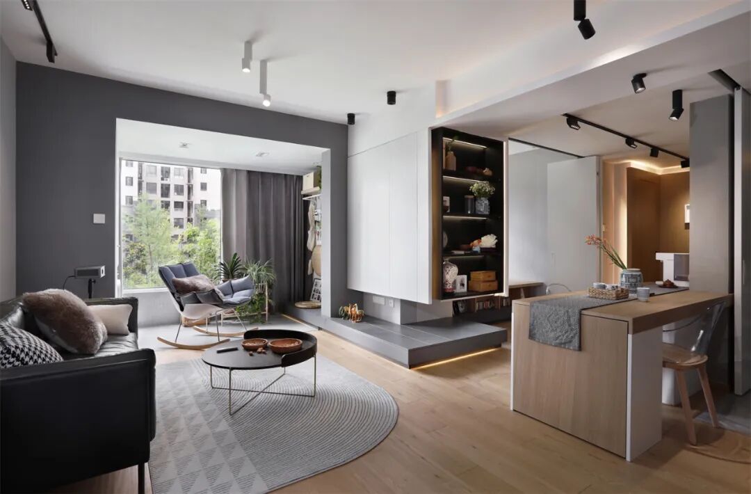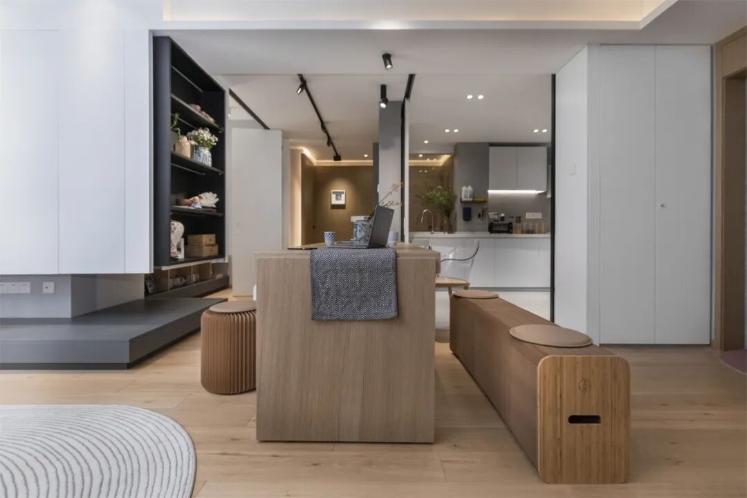 新房子三室一厅,每个空间的功能都很明确,但又都有些将就。与其用「应该在哪里做什么」来框定生活方式,不如让房子来适应主人,打造一个功能融合、可变的共享空间。