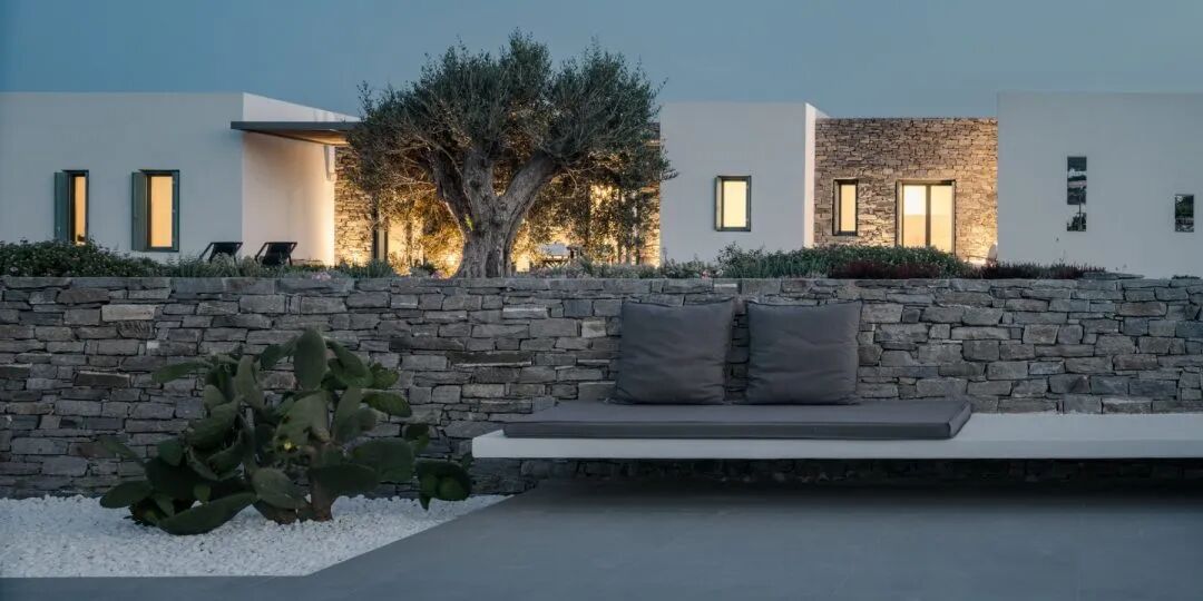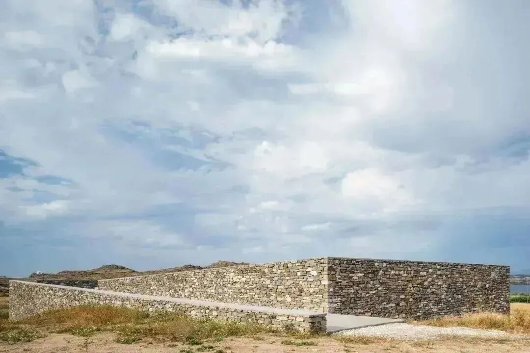 拥抱是亲密、融合、保护、保持亲密、紧密贴合、珍惜等意思。为形象化实现这一简单而重要的行为,该项目以“拥抱”命名。建筑位于基克拉泽斯群岛帕罗斯岛的北部,由两座较小型建筑构成,东面面向爱琴海和纳乌萨湾,毗邻 Aghios Ioannis Detis 环境公园。建筑伫立于基克拉迪景观的缓坡上,两幢建筑中间留有一处下沉广场,广场朝南,不受爱琴海北风的影响。