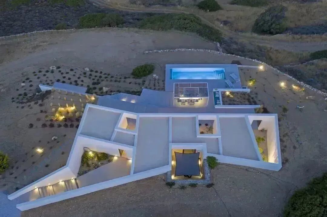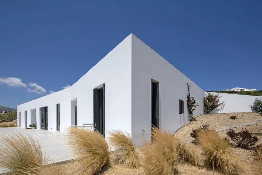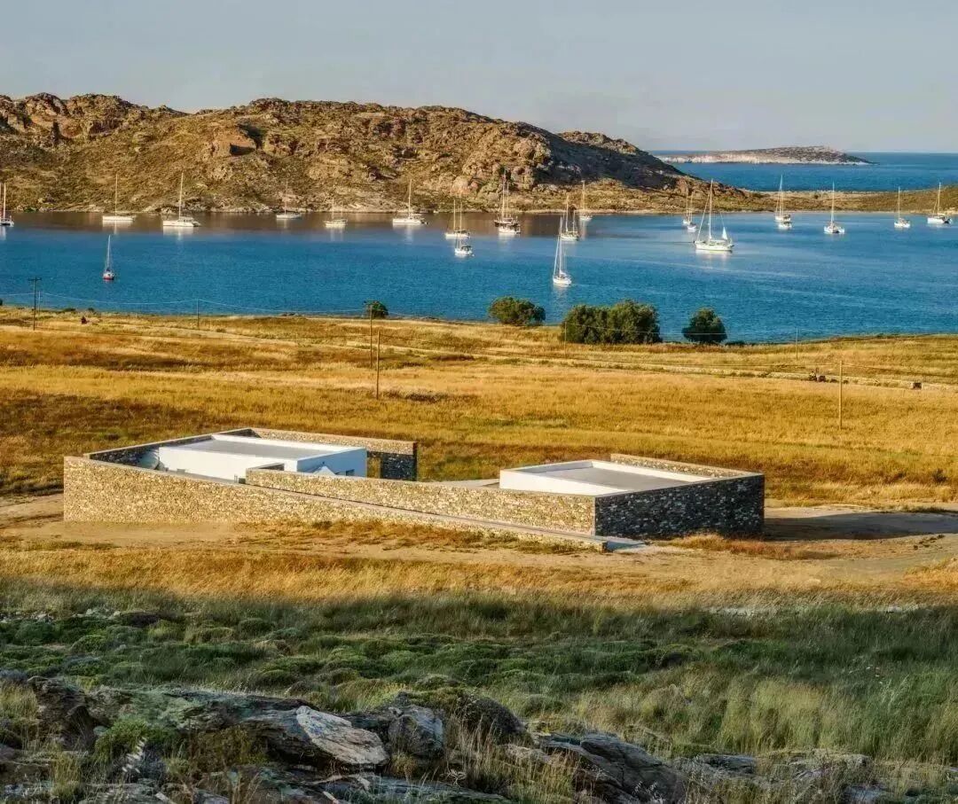 该项目设计了两座相邻的建筑,建筑沿对角线展开,面朝北向,沿东西轴线延伸,可以看到爱琴海和 Kolymphithres 湾。