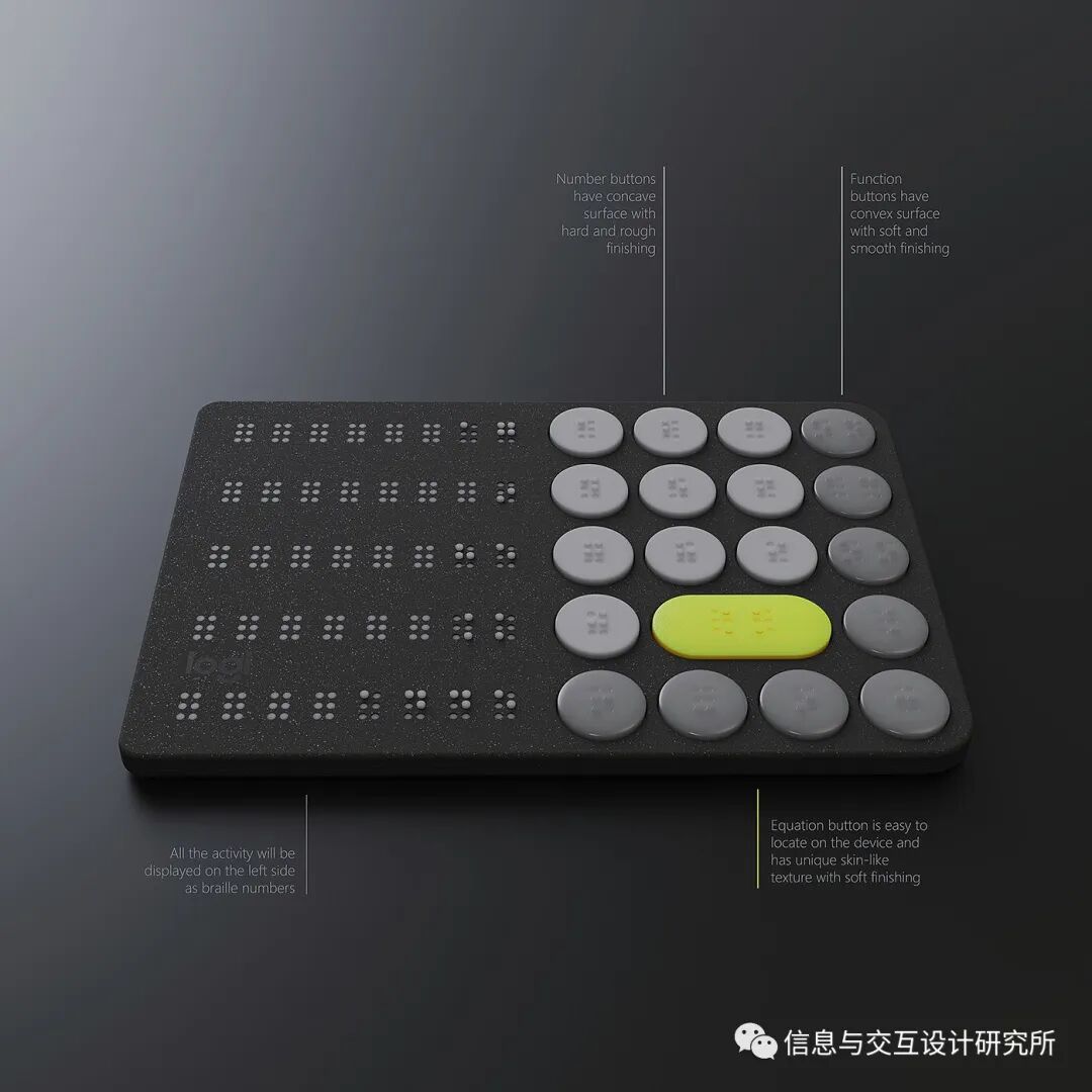 这是设计师为renderweekly挑战之一所做的概念计算器设计。对于有视觉障碍的人,它具有很强的触觉效果。每组按钮都设计有自己独特的表面处理,能够帮助盲人更好地操作和计算。