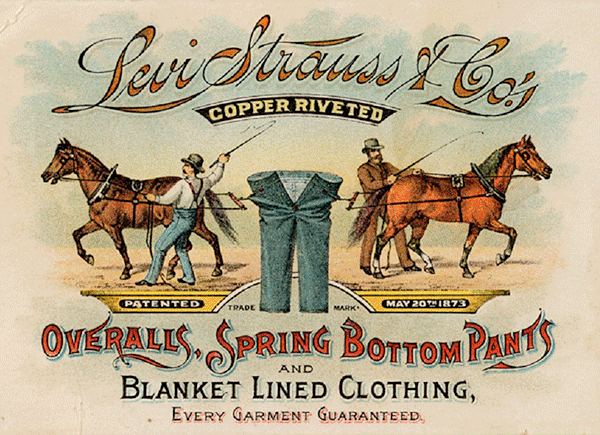 虽然得益于Levi Strauss对于传统帆布面料的重塑和改变;又因为其所生产的产品,价格十分低廉,从而使得他的那间名为“Levi Strauss & Co.”的小店,在长达二十年的时间,都一直风光无限;但直到1873年,有了Jacob Davis 的“铆钉补强”的加固理念,才在真正意义上促成了第一条牛仔裤的出现。