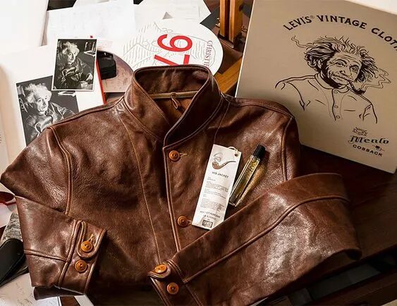 而在2016年间,也就是爱因斯坦去世的第61年期间,这件Menlo Cossack皮衣,终于在佳士得拍卖会上,得以再次出现;并最终由LEVI’S®以接近百万元的高价,将其“收编”,并在随后的2018与2019年之间,分别两次致敬了经典,保持了原先的剪裁不变,以不同颜色呈现,将人们对于爱因斯坦的怀念,一直延续到了多年后的今天。