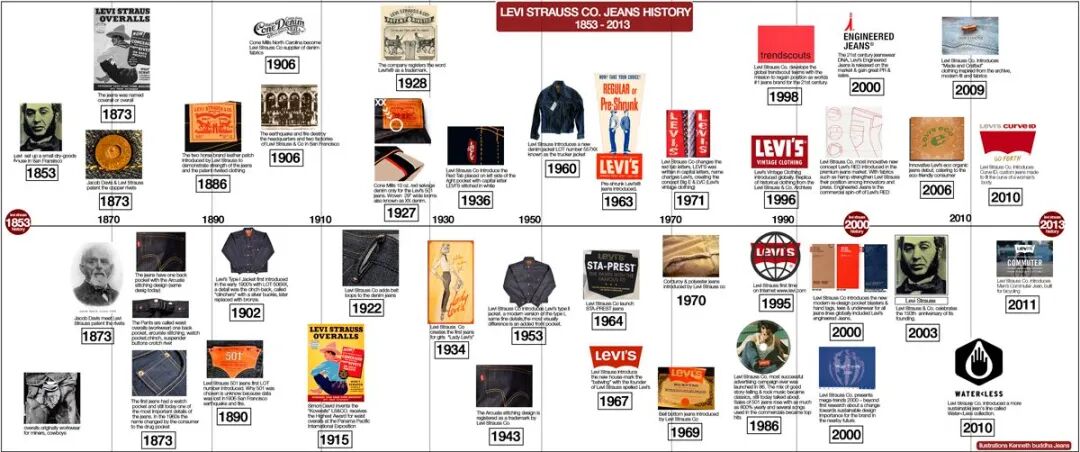 因为没有了对于金矿以及“一夜暴富”的执念,Levi Strauss开始一心一意将注意和精力放在产品设计以及生产上。很快,他所设计生产的裤子,开始流行于当时的工人群体中。而这时距离真正意义上第一条牛仔裤的诞生,还有20年。