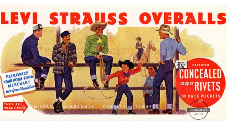 只因在整个“淘金热”的期间,形色各异人群的出现,以及在其周边:城镇、酒馆、与商店的混乱,让Levi Strauss不仅清醒认识到那些不切实际的理想,或许永远无法实现,同时更是灵光一现,开始把目光放在了淘金工人们日常所穿着的裤子上。