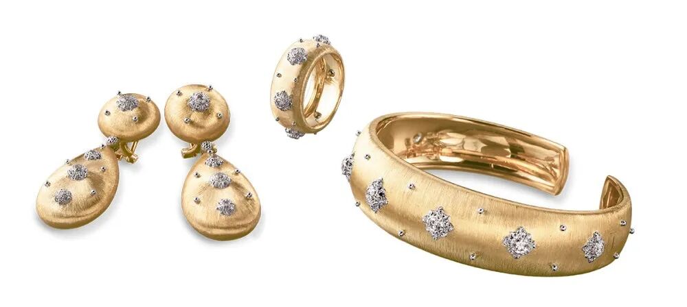 在工艺上也采用了古老的“凿点金工”镶嵌工艺,在不用“爪子“的情况下将未经打磨的原钻和抛光钻石镶嵌于金属中,使钻石呈现出比实际更大的视觉效果,直到现在也是品牌的主力系列之一。