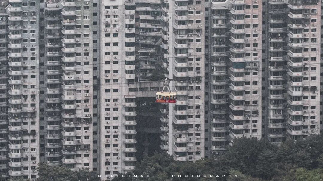 相较于原始的祖先,我们只是从爬树枝变成爬楼梯。最多就是我们现在的“树”比以前高很多。当今所谓的好地段就是靠江、滨河怎么也要近公园。我很好奇为什么动物园旁的地价没有疯涨!住在江边大楼里的为自己的绝佳视野自喜,江水则嘲笑这些混凝土树木的丑陋粗俗。但是只有沿着隧道穿梭而过的缆车才真的赢家。它们即俯视着江水,又窥视着树梢蹲距的偷窥氛围。在缆车与大楼擦肩而过的那一刻,发现树枝15楼的男人正对着江水吞云吐雾~