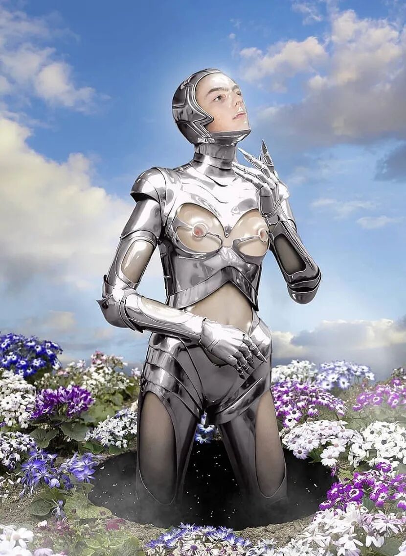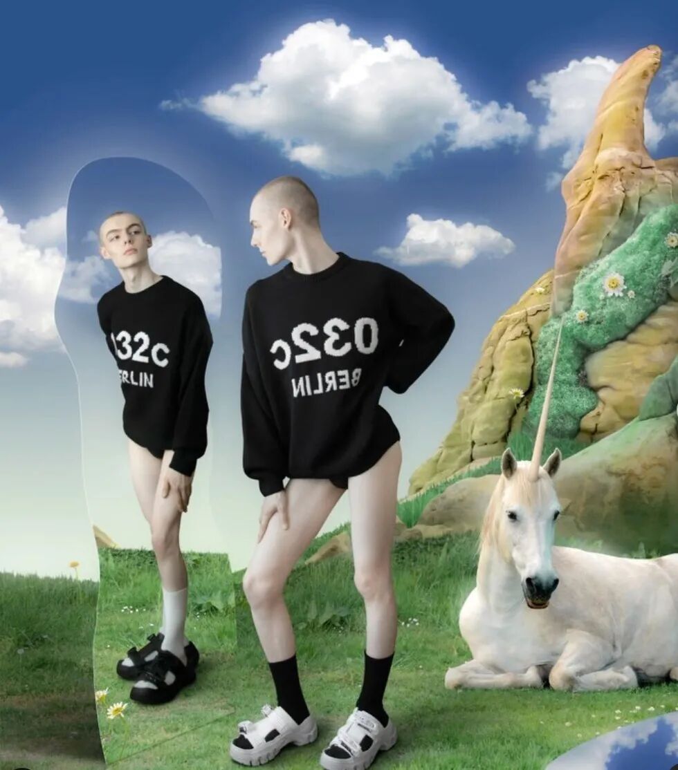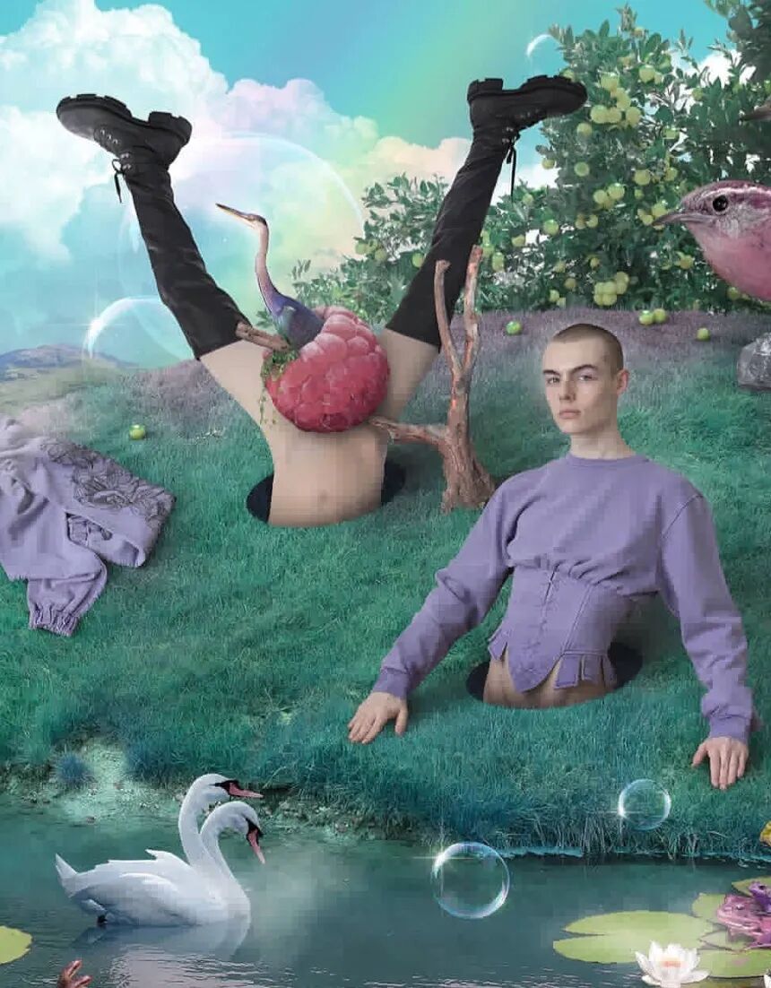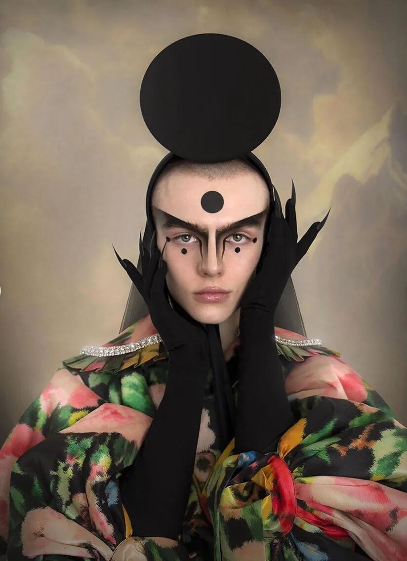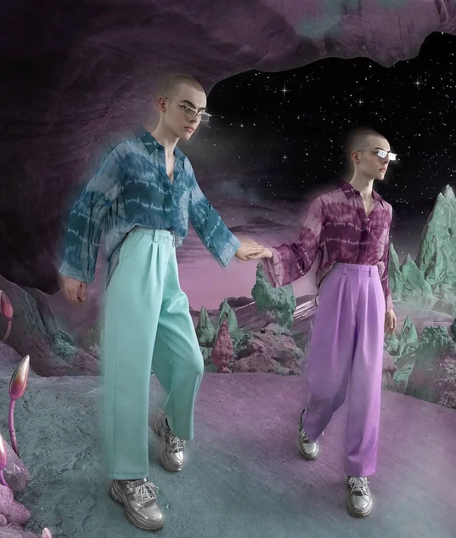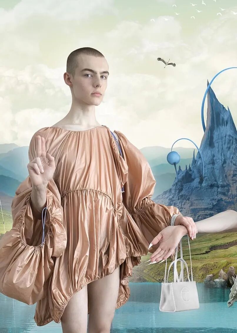 他自己也会作为模特,而且是以三头六臂,或是多胞胎兄弟同框出现在镜头前,天马行空的创意、梦幻又诡异的风格和超现实的创作手法让人一眼难忘,梦幻中带着半复古半未来的基调。