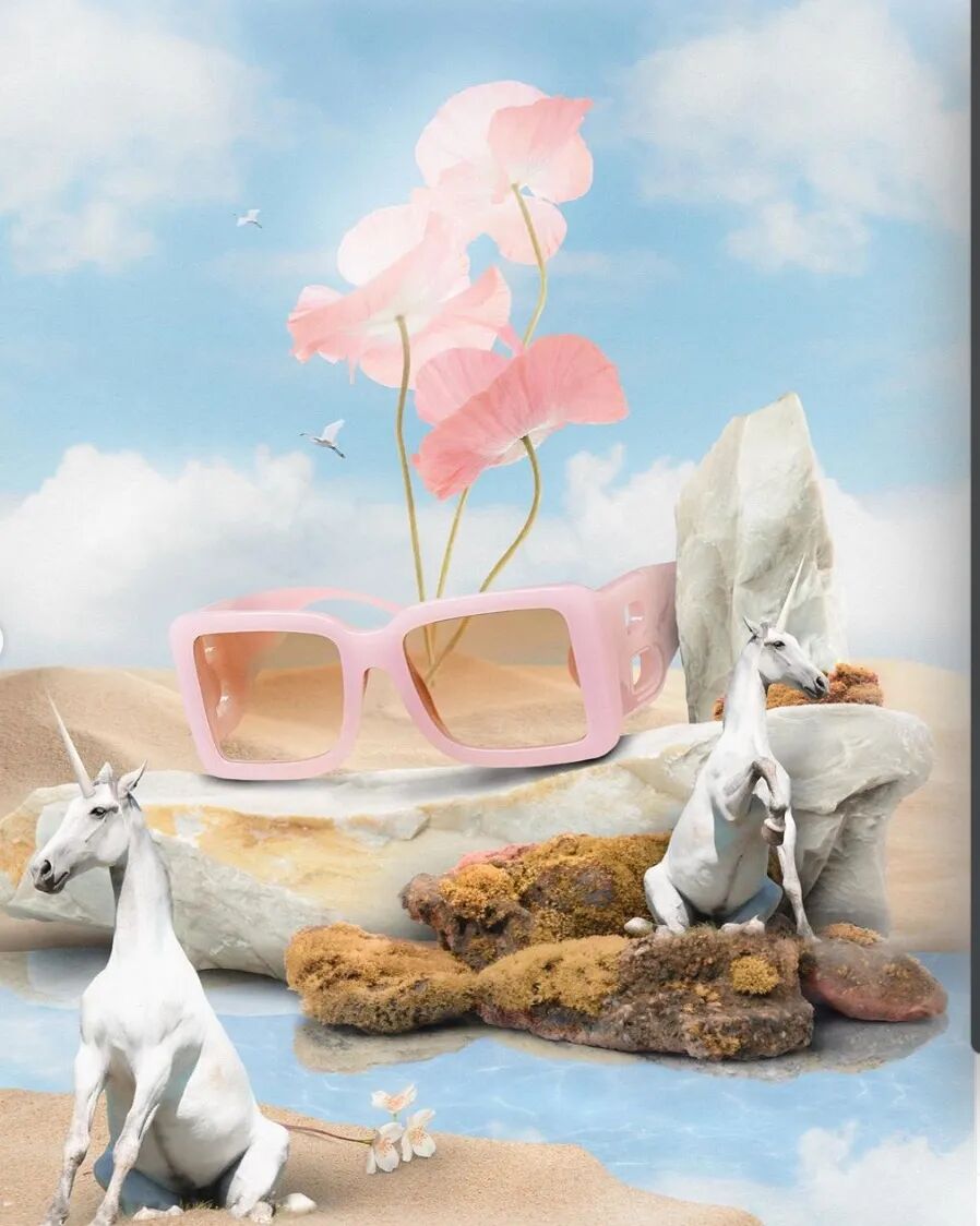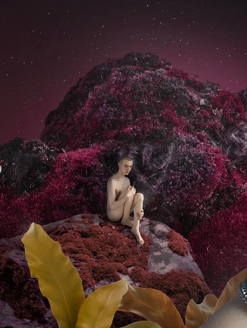 他最擅长后期用PS合成出各种超现实的画面,包括丰盈立体的动植物、扭曲却不失美感的人物肢体、干净通透的镜面等元素。