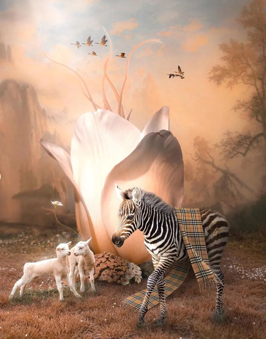 是真实世界,还是自然幻镜?蓝天、花枝和动物静谧围绕,Luca Mastroianni为Burberry打造的超现实主义概念打造艺术场景。