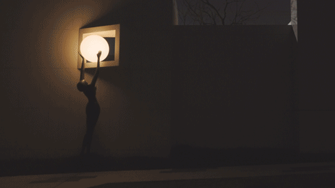 在柔光的照射下,灰色的身影投射出一片碎光流彩
