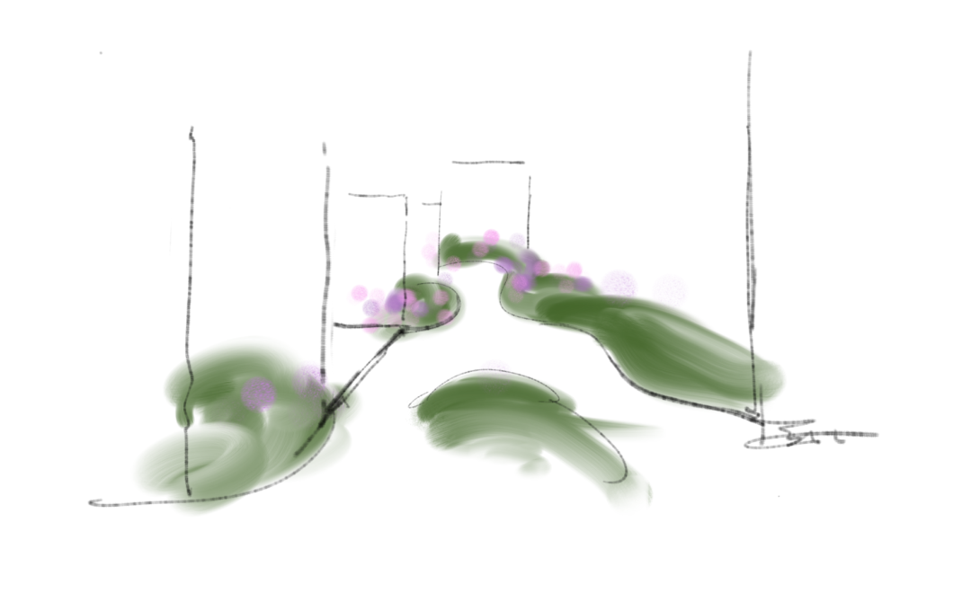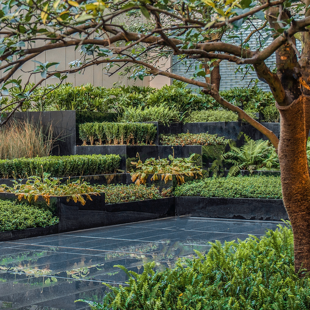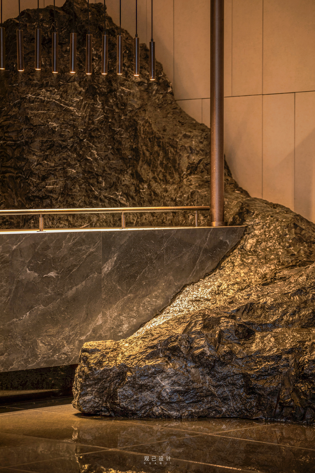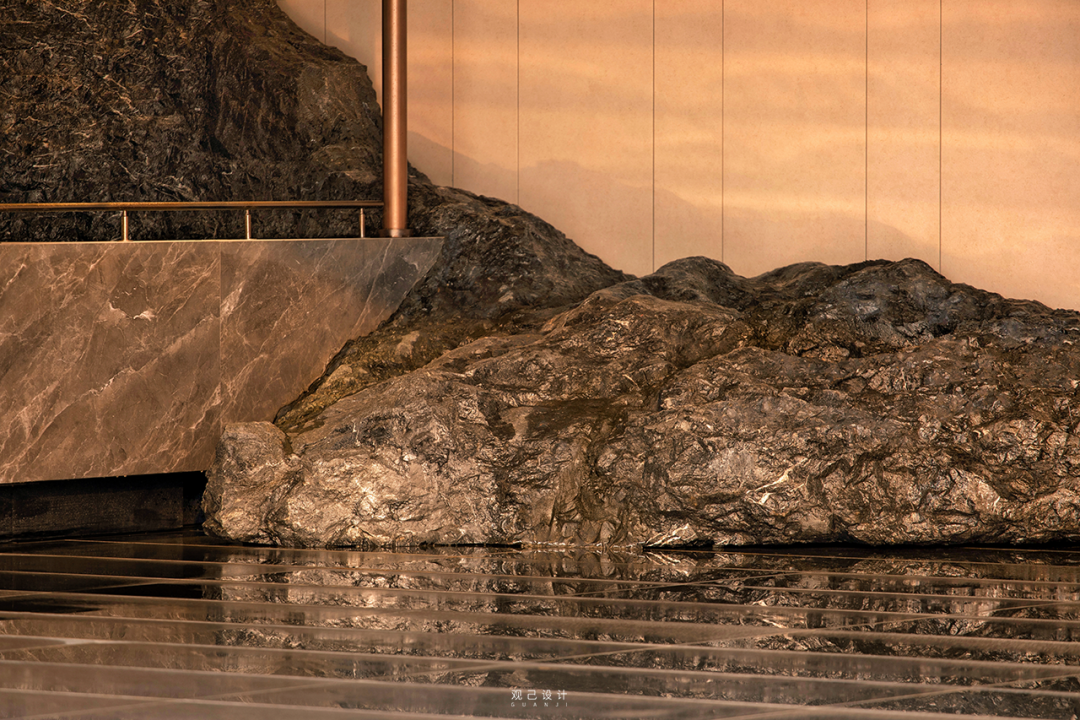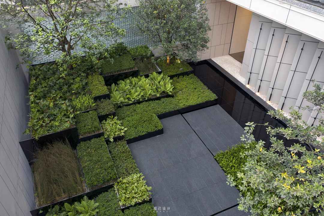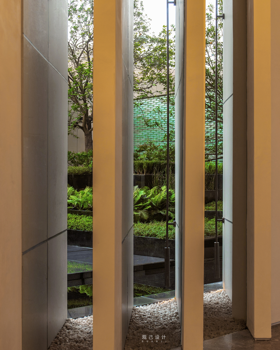 项目位于重庆渝北区,周边住宅云集,场地狭长、高差明显。针对这些场地条件,去设计区别于市场的产品及风格,打造差异化景观。在自然与艺术共生的艺术空间里,创造出极具戏剧张力的艺术沉浸体验,以及将现代精致美学艺术呈现其中。