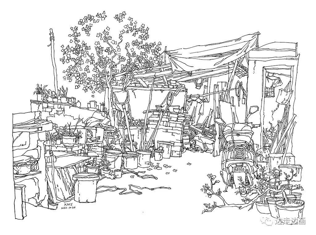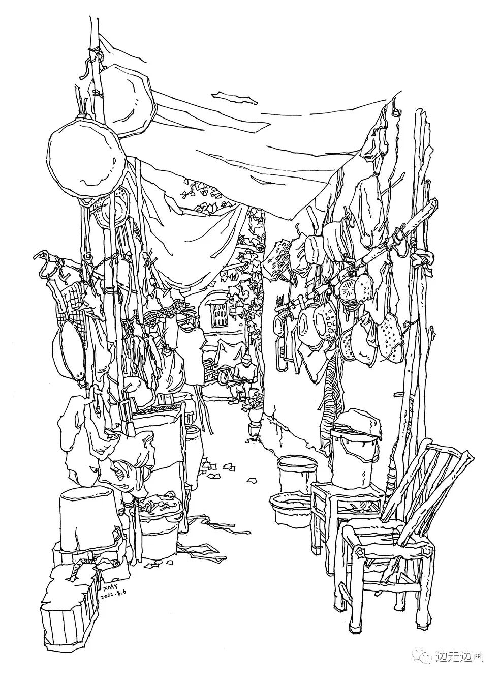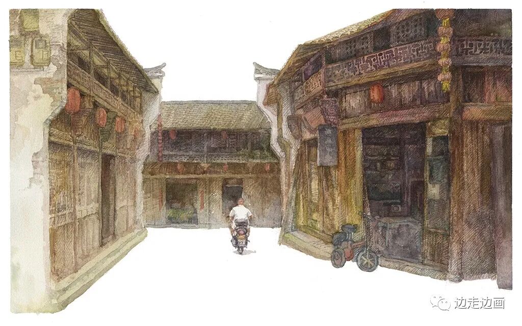 在一个潮湿、闷热的午后,我跟着边走边画的队伍乘坐大巴来到了兰溪的诸葛八卦村。下了大巴车,入眼便是无尽的碧绿,满池荷香是我对这里的第一印象。不同于城市的喧嚣,这里的慢节奏生活让我的心也随之静了下来。也许是学业的繁重,或是琐事的羁绊,好像许久没有停下脚步看过周围的风景,这里的一草一木对我来说都显得十分新奇。