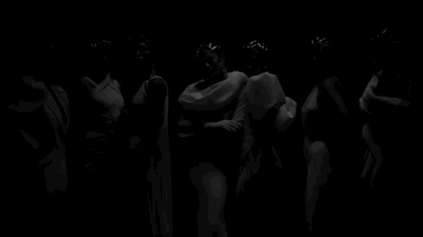 经典的黑白色系让女性披上优雅,柔和的褶裥和轻盈的羽毛化解了暗黑风格的凌厉。带有分割效果的腰带又将人体的比例调整的恰到好处。