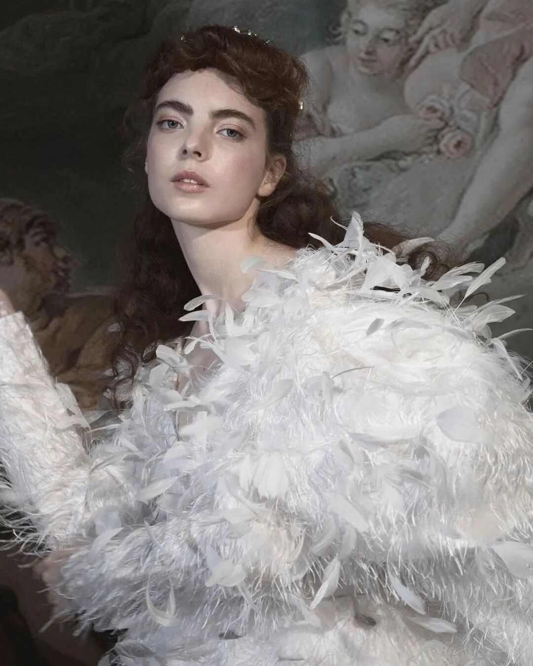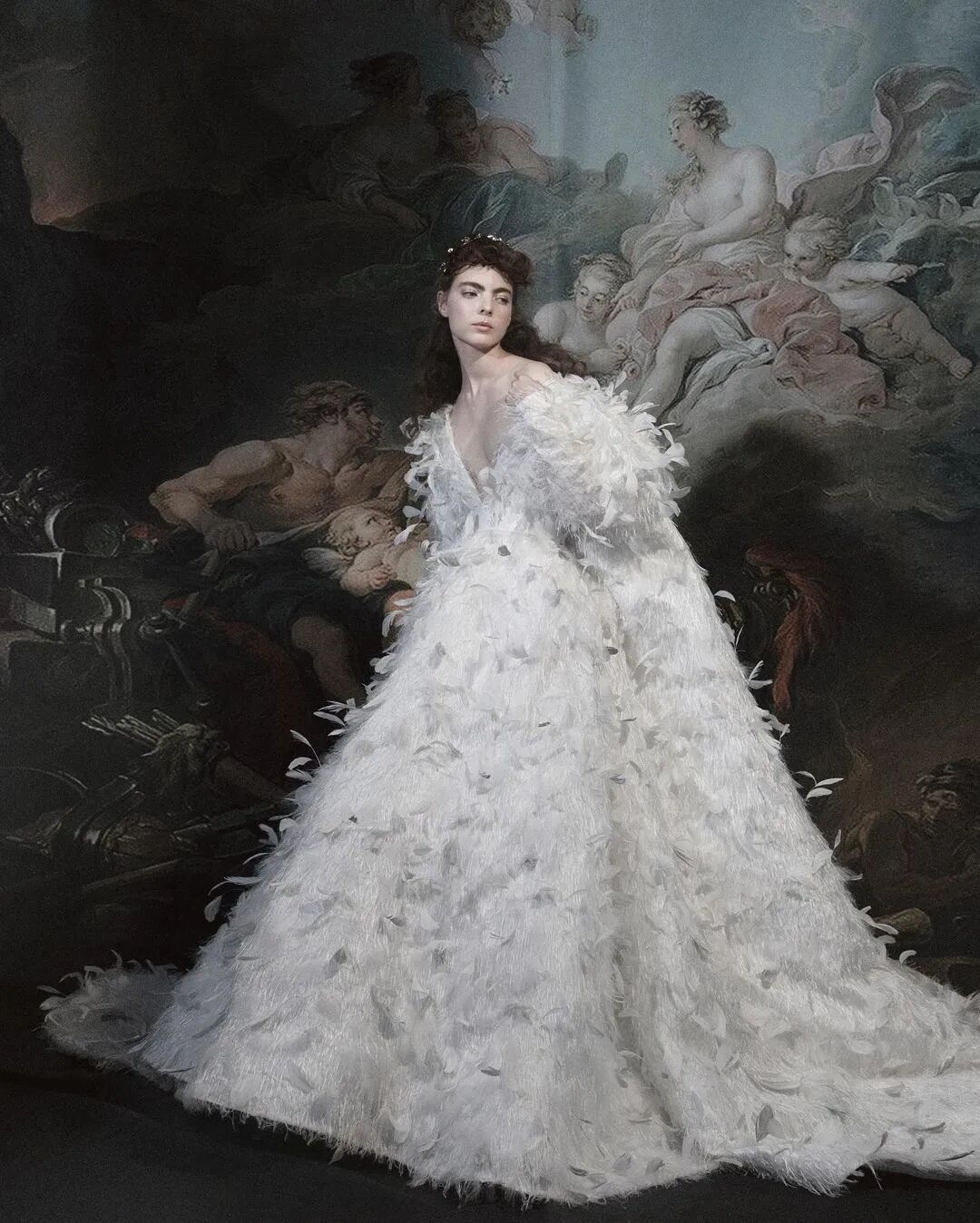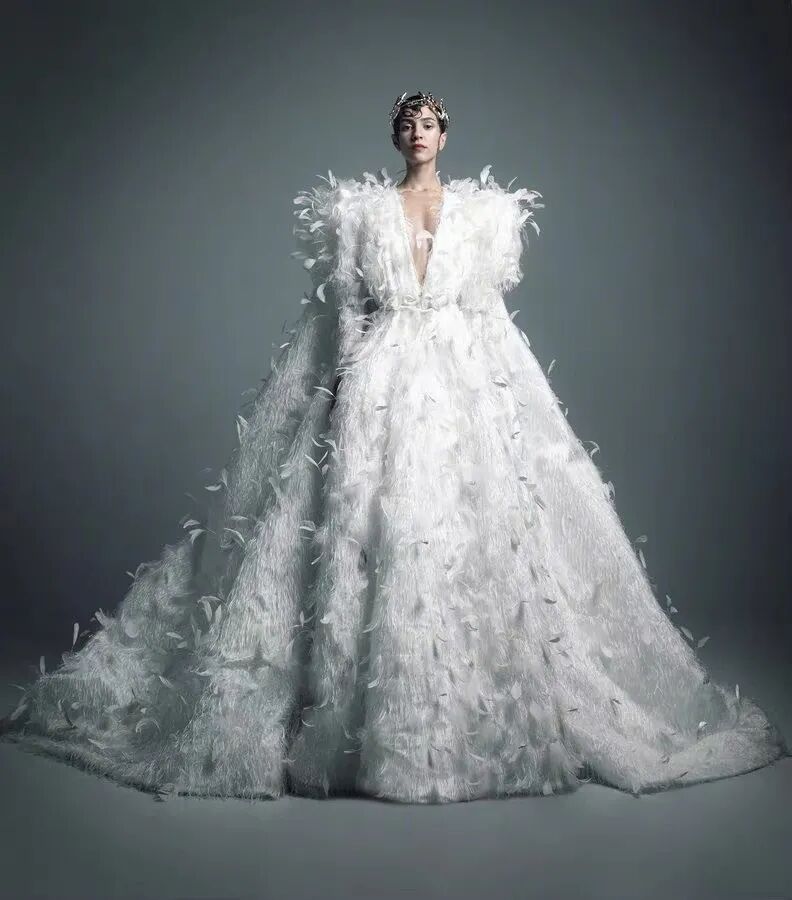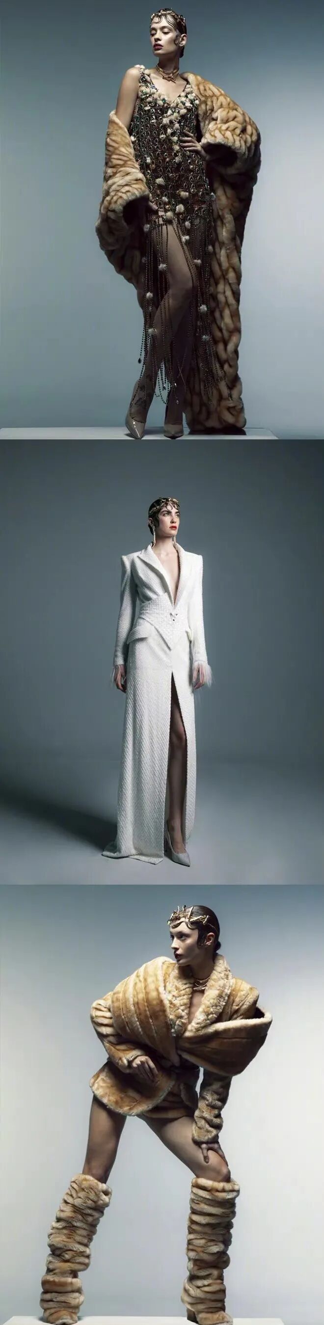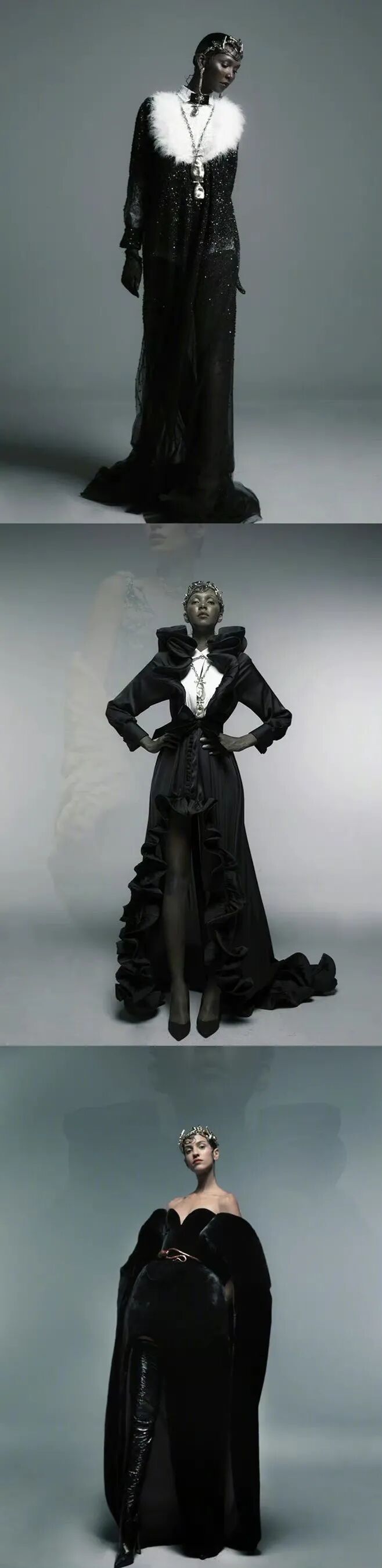 Nicolas Jebran对手工艺与精致的美尤为偏爱,他设计的裙装在华丽中带着几分暗黑,亦正亦邪的风格在皮草与羽毛的装饰下尤为耀眼。