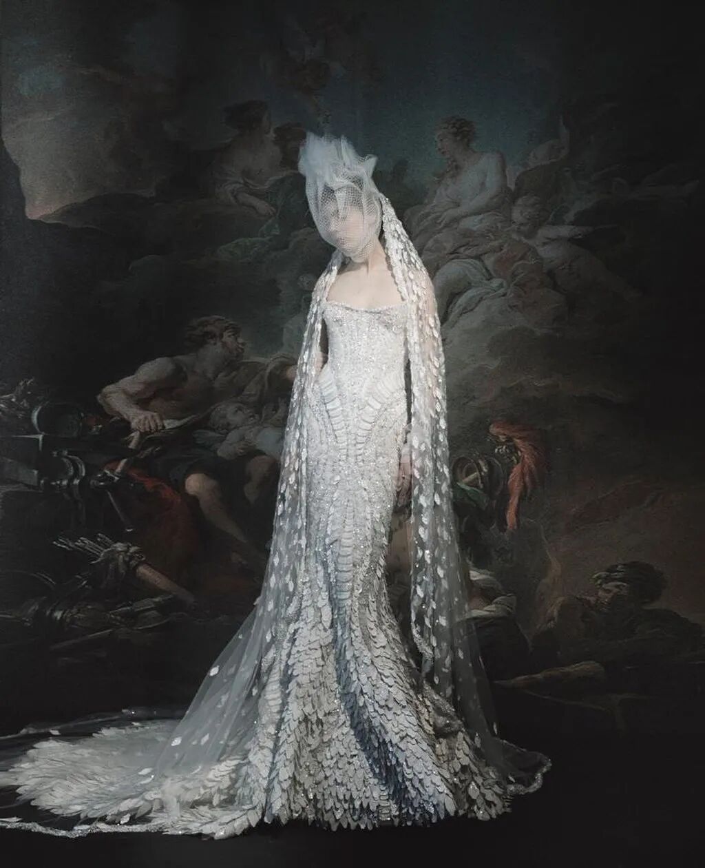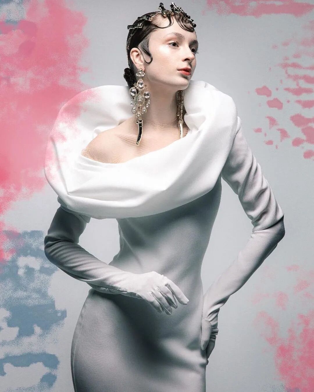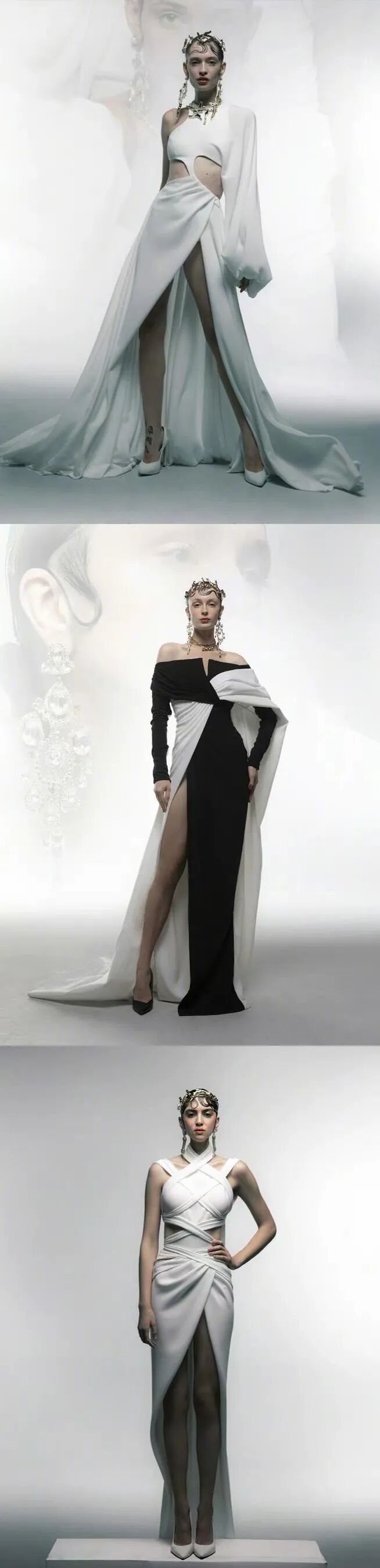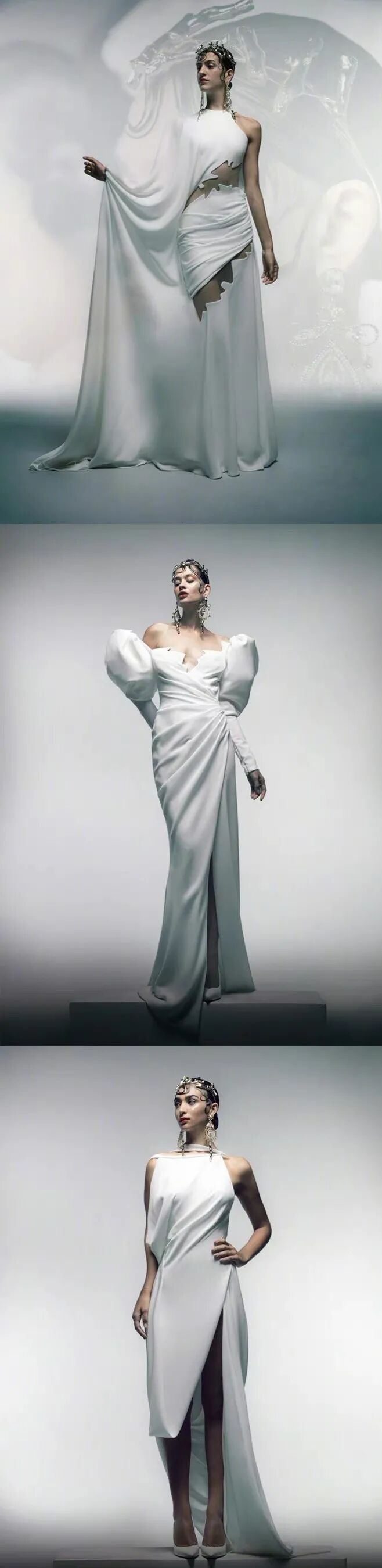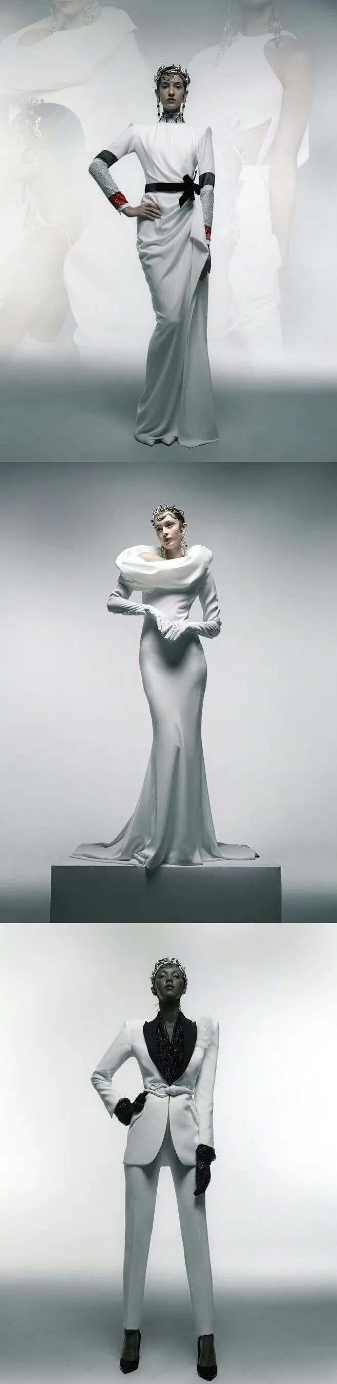 在素色的礼服中,我们感受到Nicolas Jebran带给人们的神秘感与未来感,服装装饰着人们也缔造出一种梦幻般的美丽。