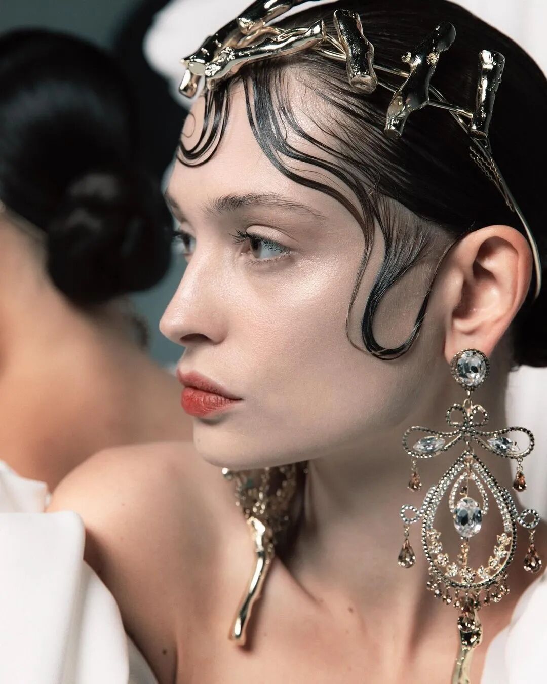 对于服装的结构,Nicolas Jebran也有自己的独特的见解。带着不规则的分割线,自由的划破女性身体上完美的曲线,精致的金属配饰又闪烁着多彩的光。