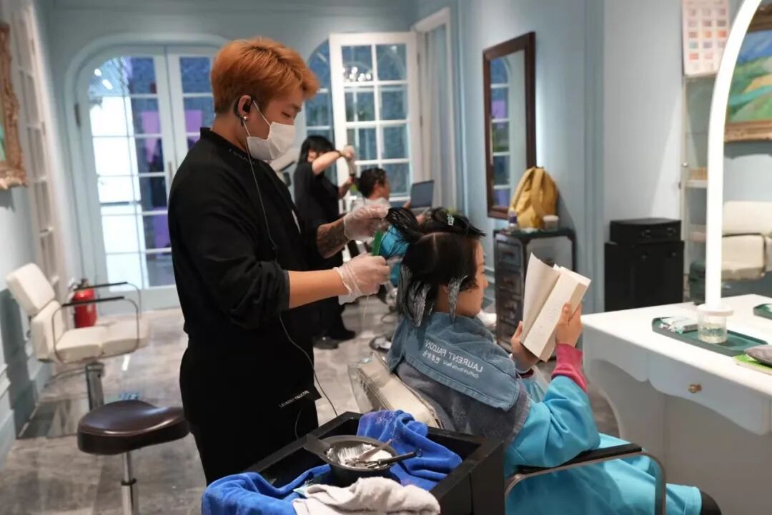 有些理发店还提供下午茶、摄影师拍照,设有专属独立空间。