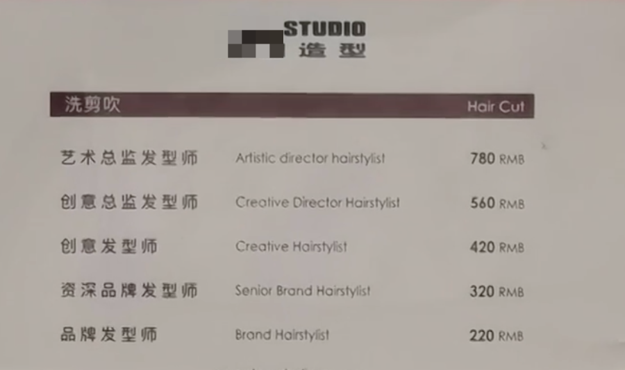 培训结束后,曾经的Tony老师也变成了设计顾问、首席和造型总监,大家理发价格自然也就水涨船高。