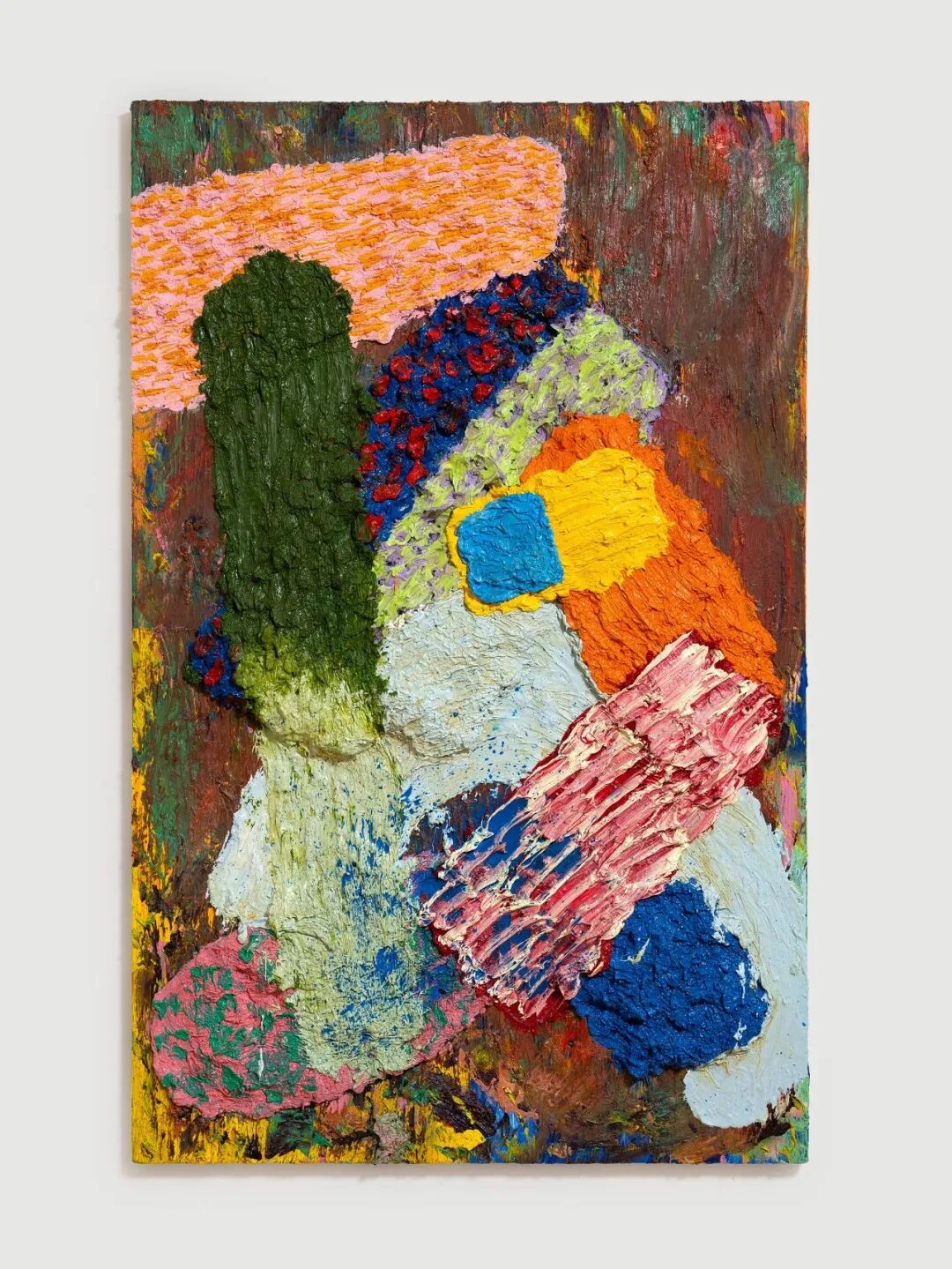 艾迪恩作品所透出的失衡感,因其垂直形式而更为加剧;高高挂起、与墙齐平的这些作品,更有一种与生俱来的倾斜感和具象寓意。然而构成作品的神秘、无规律的有机形状,更赋予了作品一种古老气息,恰如一座象征暗示着肉体的图腾柱。