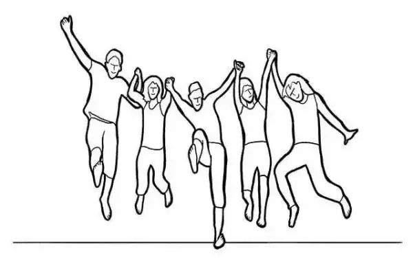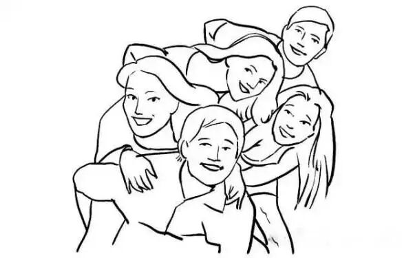 6、采用仰拍姿势,所有人靠在一起,尽量让头部挨着,并一起拥向镜头。