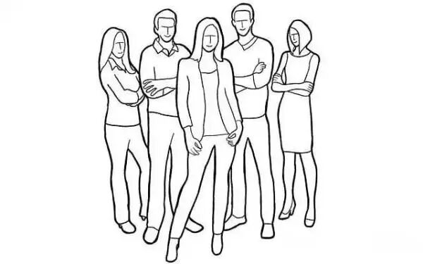 8、全体自然站着,最重要的人站在中间靠前的位置,有一种众星拱月的感觉。