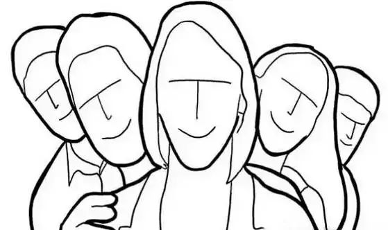 7、选一个人(最好是脸最小滴!)站在最前面,其他人从ta身边把头探出来。