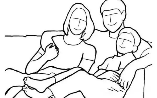 20、一家人或坐或靠在沙发上,尽量把拍摄放在人员上,减少拍到其他家具。