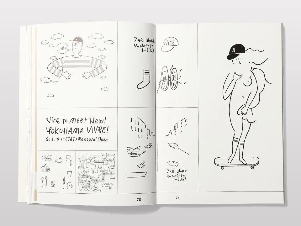 插画其实是比较个人的审美,偶然发现这本书是几年前在东京的茑屋书店,翻阅之后爱不释手。长场雄(Yu Nagaba)是毕业于东京造型大学的70后插画艺术家,他以嘻哈时尚和滑板文化为灵感,以简约而带着潮流感的线条作品而闻名。