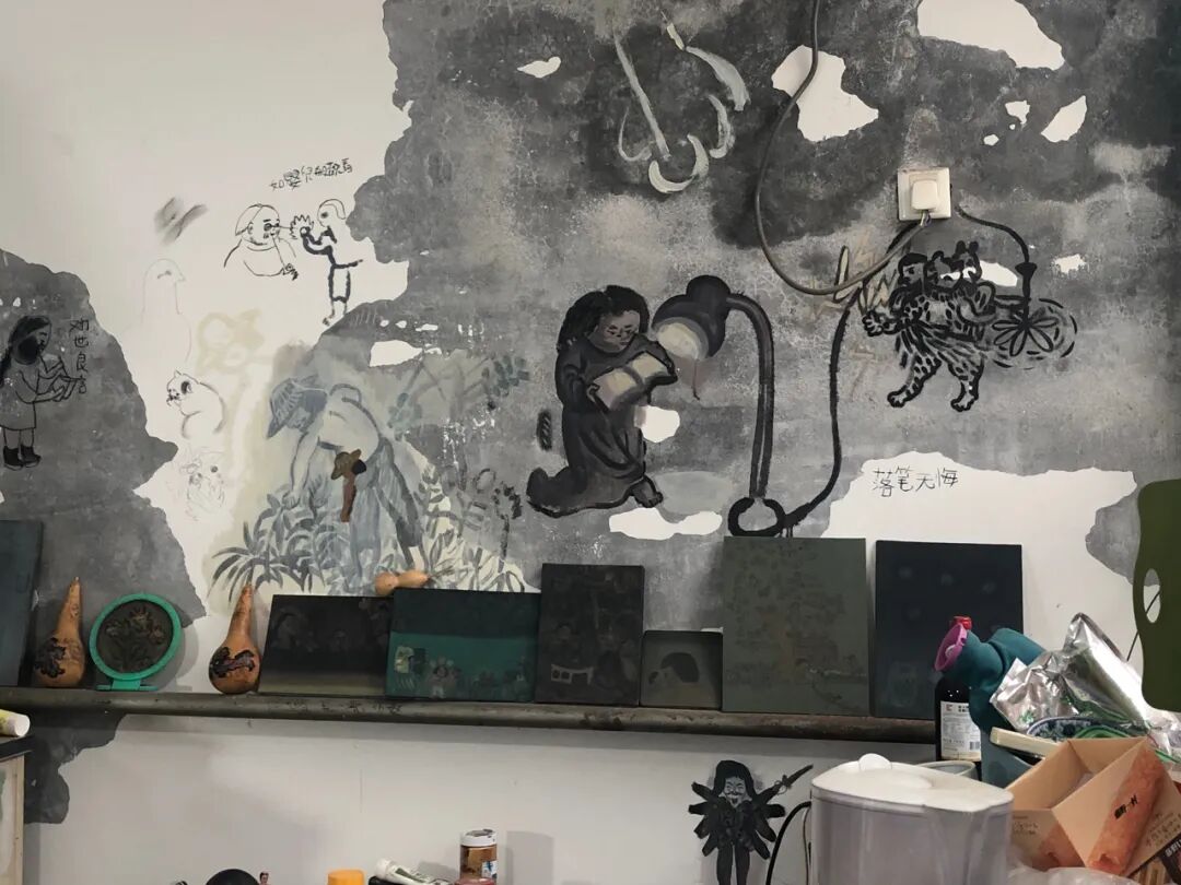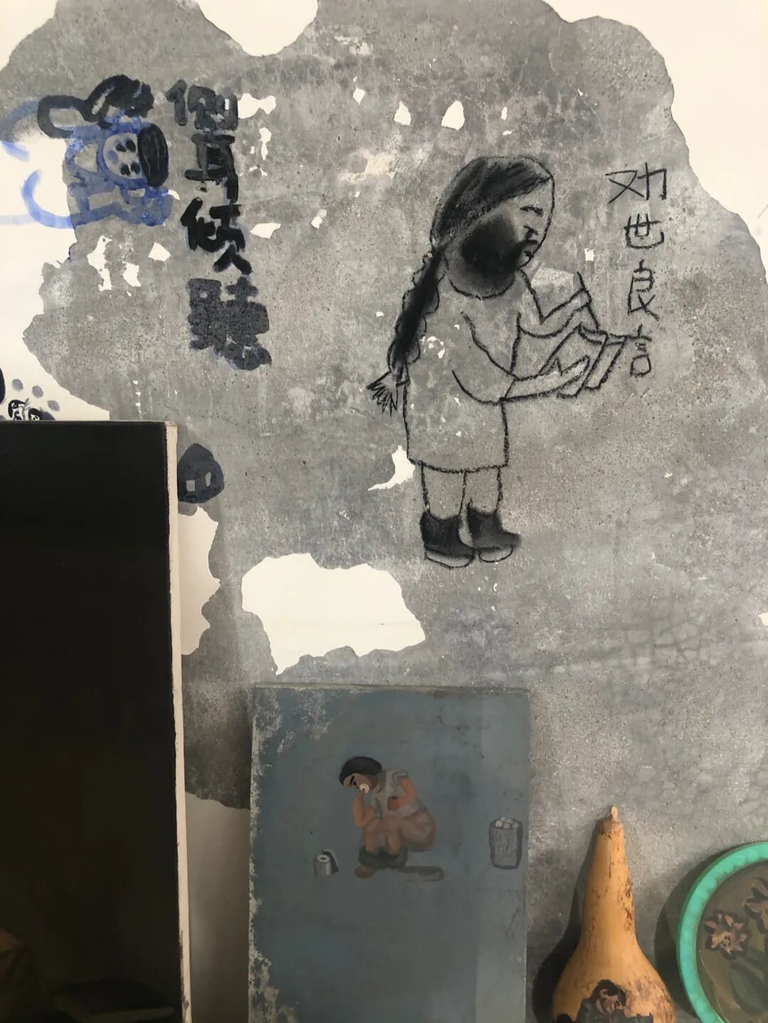 除了在画布上创作“正常”的油画,他在纸本、木板、石头、瓦片、水壶、桌子、椅子、门板、瓷砖、瓦楞板等各种材料上留下图像,生活、绘画之间的界限模糊起来,私人生活中目光所及之处皆生画意,颇有“拈花一笑万山横” 的意趣。