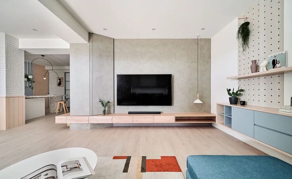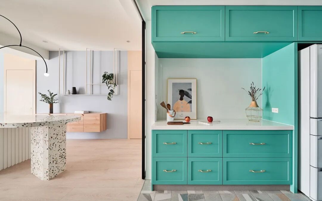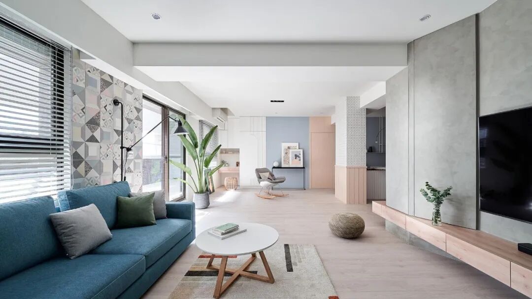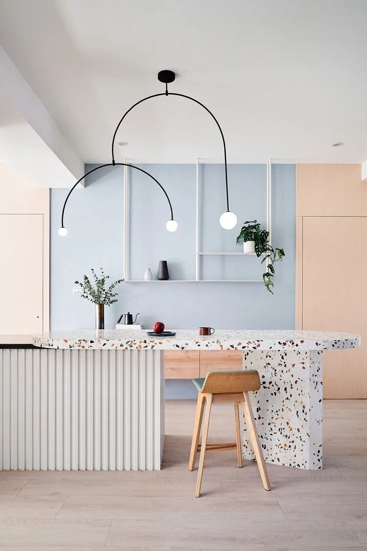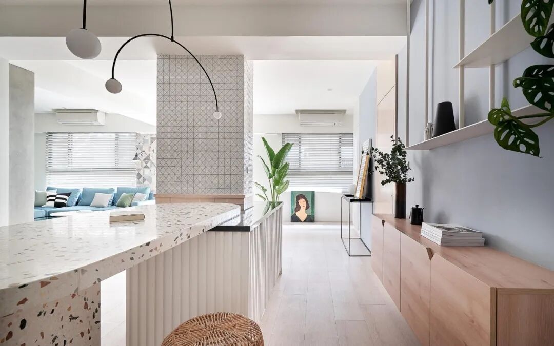 大自然本身就是一部翻阅不完的缤纷画本,从前至今,许多艺术家常从中被鼓舞,闪烁出创作的灵光,待将元素加以转译后,一个个不落俗套、令人怦然屏息的创作即迸发于眼前。 不知道你是不是也知晓,滂沱大雨后的天际,除了有广被作曲家和诗人引用为题材的彩虹,够幸运的话还能在彩虹的最外圈,发现一道彷彿被爱作画的天使淡然轻抹、隐约而朦胧的圆弧,科学上被称之为副虹,还有著一个更美的名字 一「霓」。重複端详霓的意象许久,深受其低调,却流洩出无限柔韵的样态所诱发想像的设计师,将霓似有若无的视感层次,细腻地倾注屋宅中,形塑一片静谧,直想徜徉于此的漂浮幻境。当我们走访里头,满盈的欢愉气味让人跟走在云端上一样地轻跳,一层又一层卸去现实的束缚,潜进虚实交织的光景。有那麽一刻,脑海裡倒映出斯洛伐克摄影师 Maria Svarbova 泳池系列作品,也想起了英国年轻艺术家 Charlotte Taylor 的画作,他们都是在极简的本质下,运用色彩与线条的接轨流动,营造多样化的几何语彙。若多驻留每个画面几秒,你将愈加感到时间宛如按下静止键,和光影一起,妥善地收折安宁且奇幻的氛围。如果可以住在梦里,那会是什麽样的感受呢?闭上双眼后的世界,又会有哪些有趣的现象发生?为了进一步衬托虚实之间的感受,设计师藉由重新铺陈空间佈局,掺入一点关于梦境的小幽默。他提到在梦中,我们常自由自在地下一秒就抵达其他地方,也很容易会有怎麽绕,还是回到同一处的情况发生,因此结合迴游的动线手法来描绘梦境常态,增添内部错综迷离的层次感。通透的开放式场域供居住者尽情漫步,享受无阻隔的开敞生活,依偎著结构柱的弧形中岛,则拉出三条隐形线,于无形中定义著不同的起居空间,更彷彿划分成多重的观景窗,交互捕捉人们在裡头来回穿梭的剪影。侧边依序列排的窗框,豪迈铺开欢迎日光及空气旅居的景致,而这两者恰好担任了成就空间意涵的鲜活要件。就如同要形成一道霓虹,阳光须在水滴内进行折射与反射作用;想彻底传达设计者的念想,也唯有当光线辗转洒落在所有设计细节身上,包含如云朵般的圆润滑线、大小柜体和砖瓦的精细纹理,陈列器物的人文质地,还有别于厚重,反倒显得可爱的水磨石材等,照映出清浅又明淨的透明气息,才能真正与日常调和,勾勒预想中的唯美况味。显现著霓虹调性的空间,装载的想像大小远超乎地坪的量尺刻度,除了拥有嚐起来微甜、悠然舒惬的生活梦想,还添加一份真切的祝福和隐喻 一 希望身置屋子裡的人们,无论今天过得是好是坏,在你回家时,一切都将雨过天晴。