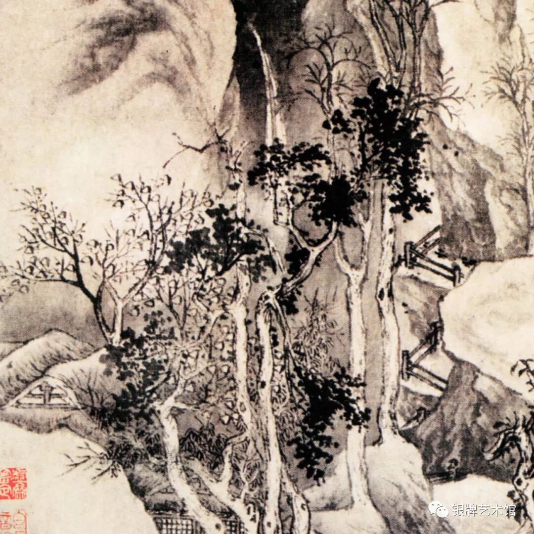 此图位置经营,如树木偃仰,人屋安放,泉石错落,山路迂回,都别具匠心,和一般简易的文人山水画不一样,尤其是全图笔墨隐约可见宋代山水画的骨骼,真可谓“北人南相”。