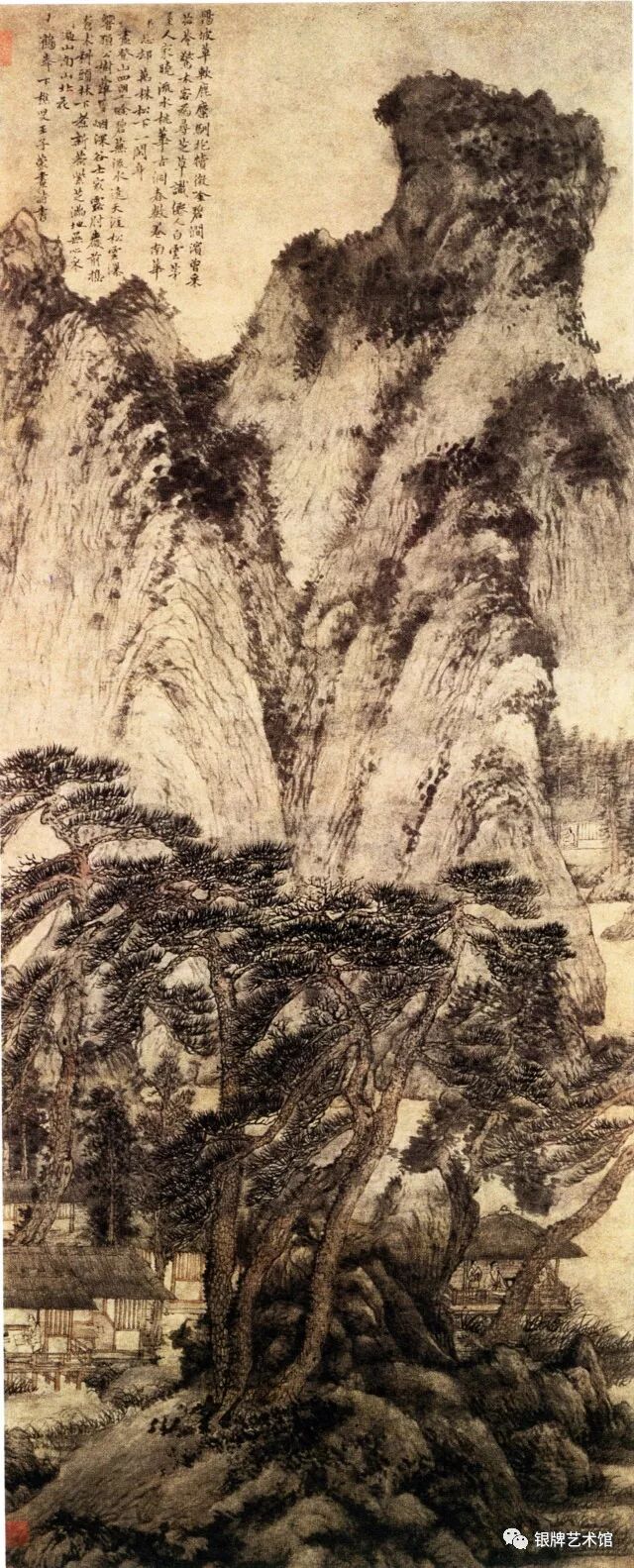 王蒙宗法王摩诘(也就是王维),对董源、巨然的山水用功尤深,能自出新意,并且以大自然为师,独具面貌,是元代末年富有创造性的山水画大师。