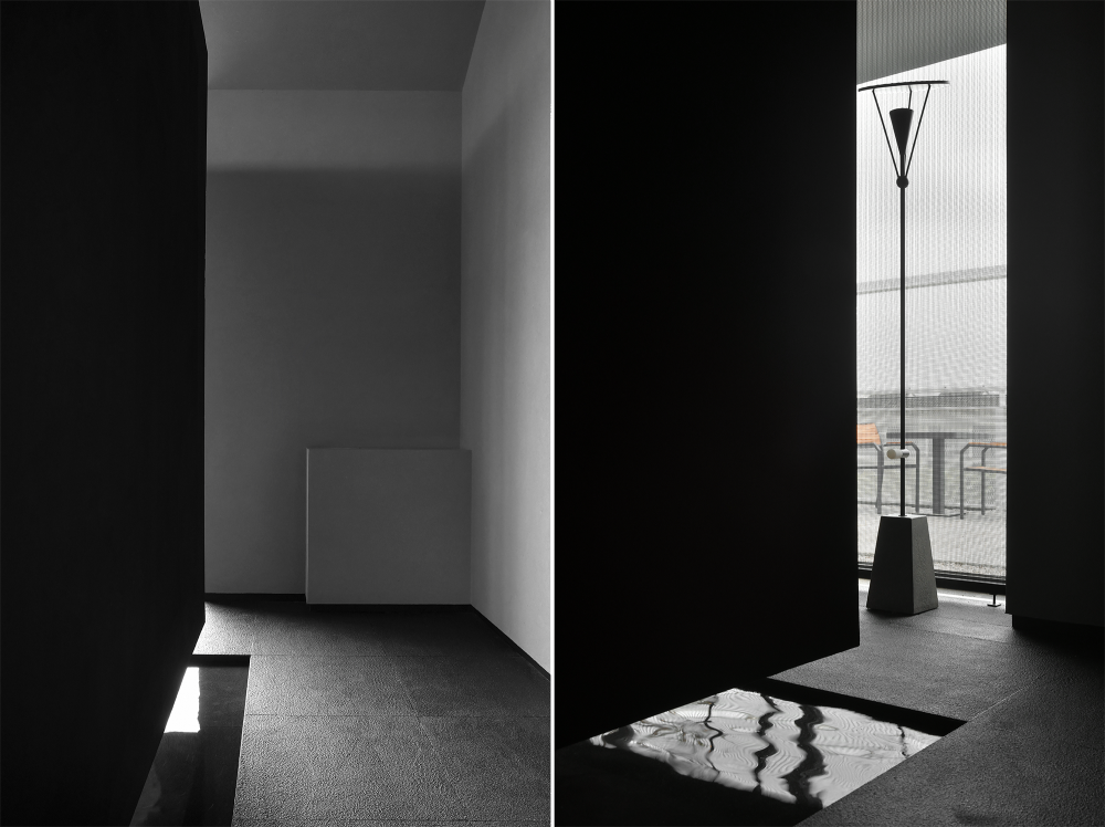 盒子内部的亭构成一个微缩美术馆,每次展出一张画作。与传统“亭”的概念有所不同,它是座摒弃外部一切喧嚣的亭,旨在制造精神层面上的绝对静谧。
