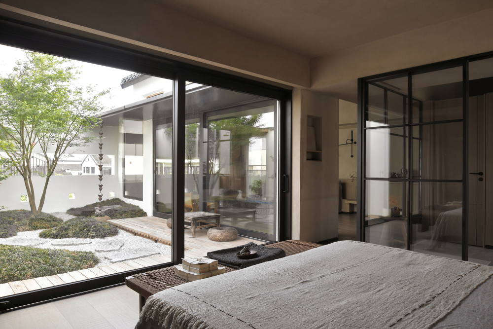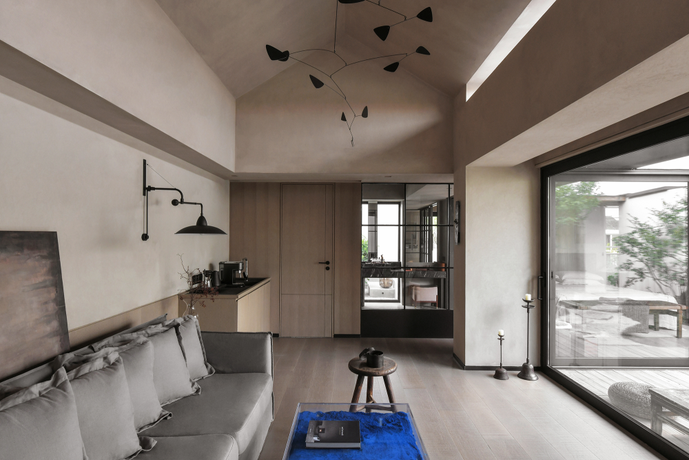 进入VILLA,庭院迎面而来的绿意,诚实得近乎平淡的木质,成为空间的主要材料,深具使人放松的归属感。