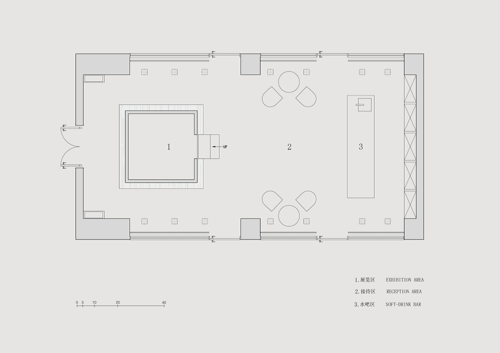 整个接待空间主色调为灰色,富有肌理感的不同灰调构筑了空间的不同界面;而两个盒子层层叠进式的动线规划,又为来者提供了内藏的玄妙,独览的惊喜。