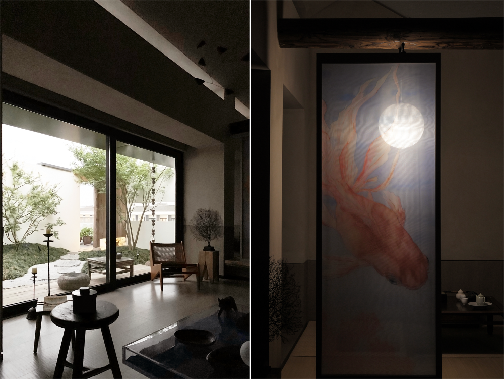 作品传递着东方式情感,用自然哲学重新诠释纷繁多元的世界,追溯事物与空间的本源。以艺术感知力为起点,通过不同程度的力度提炼、融合东西文化元素,不断打破固有模式,展现出具有当代性、别具一格的设计力量。
