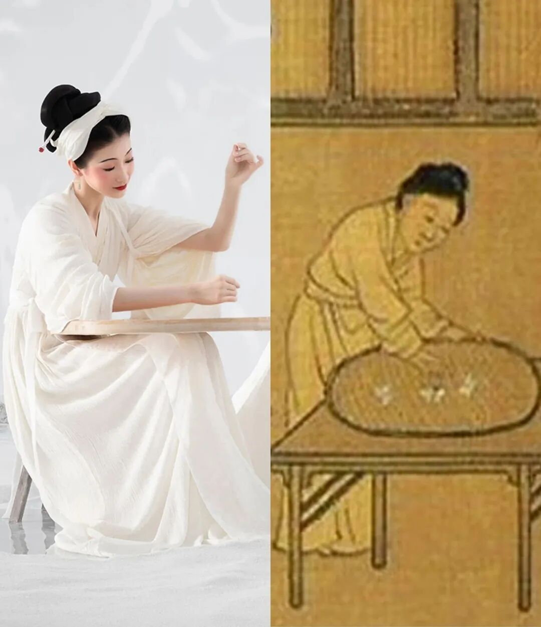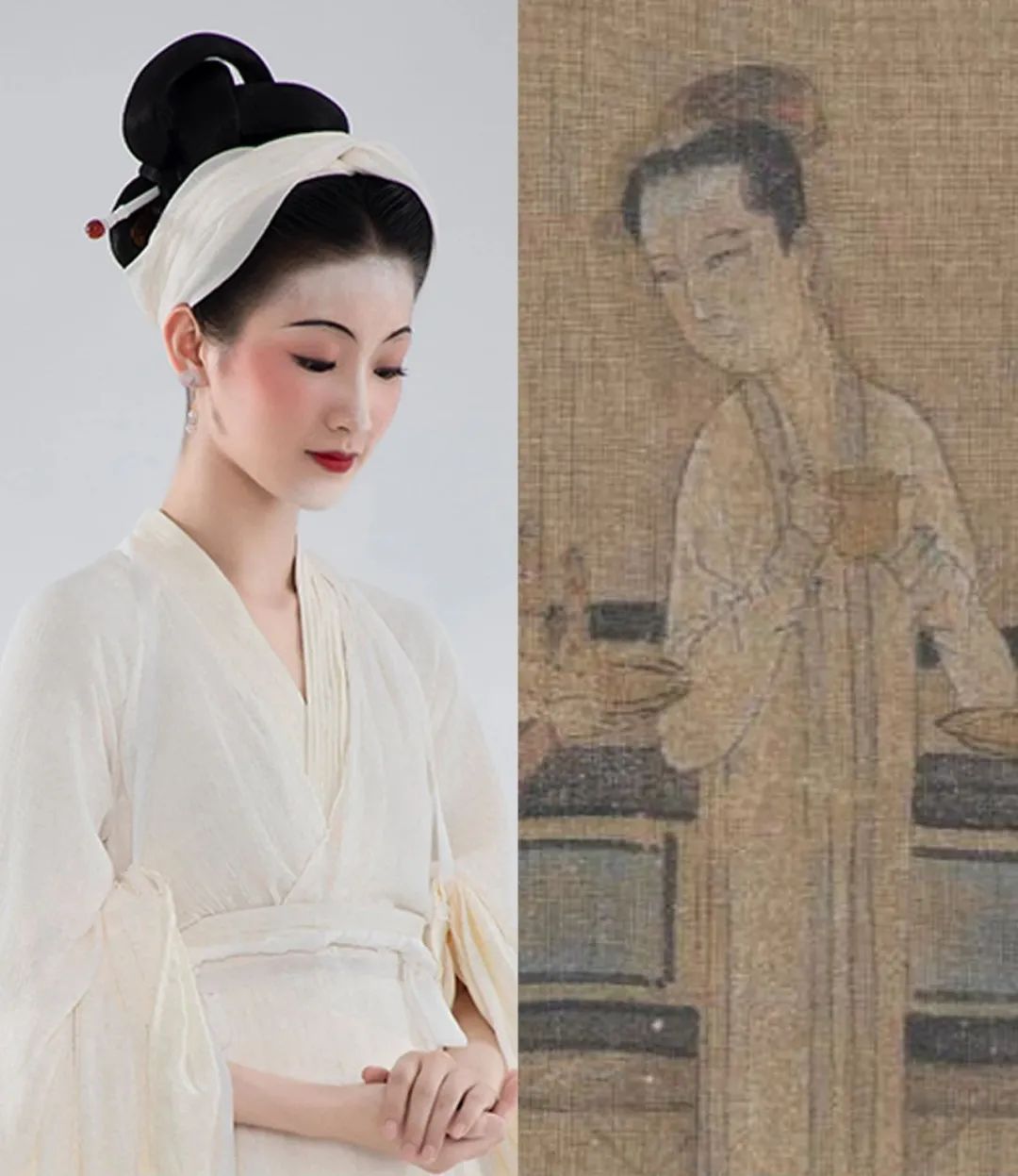 演员造型是从古画中寻找的灵感,梳盘恒髻,整体还特意做了纵向拉长处理,显得更纤瘦,符合宋人的审美。