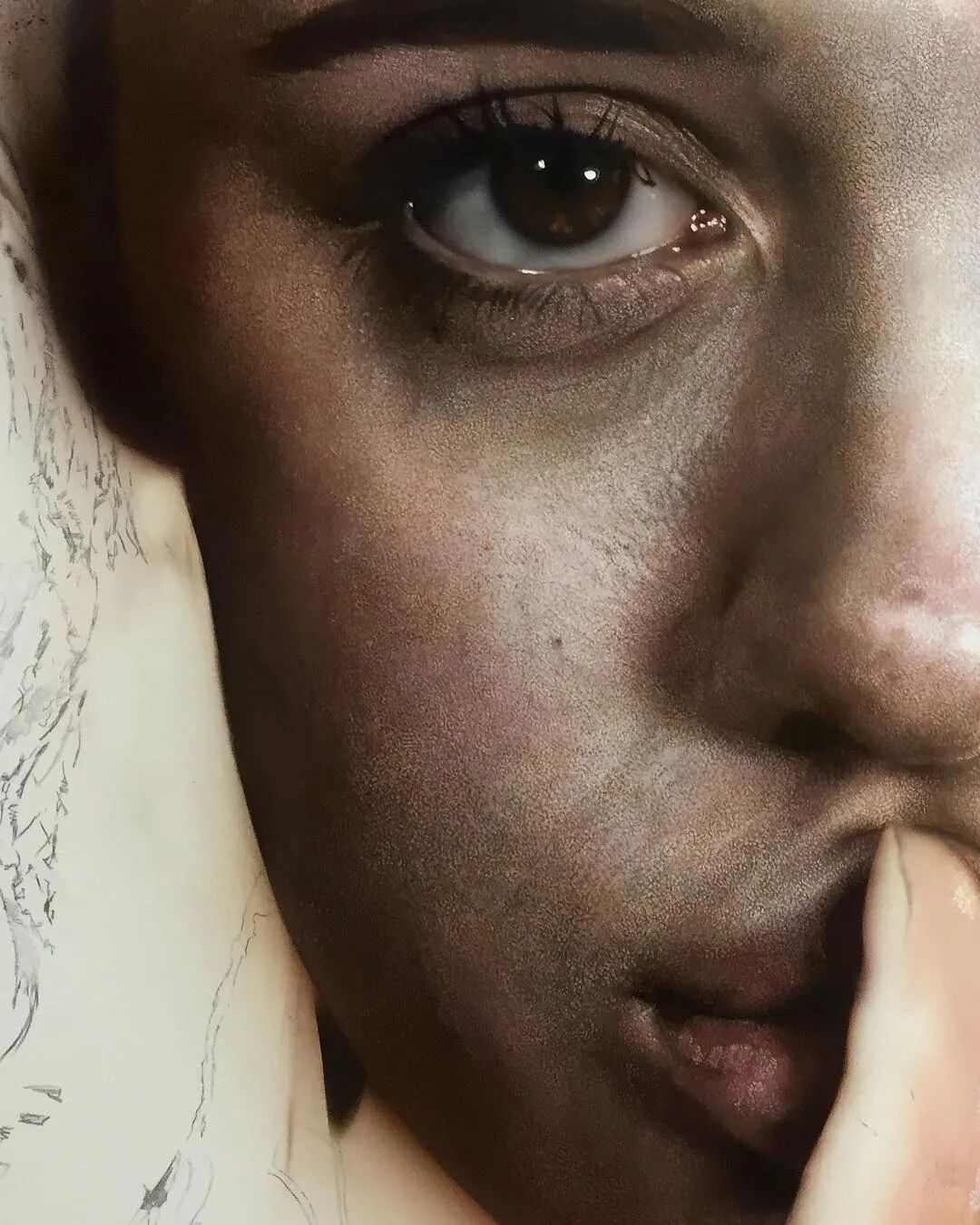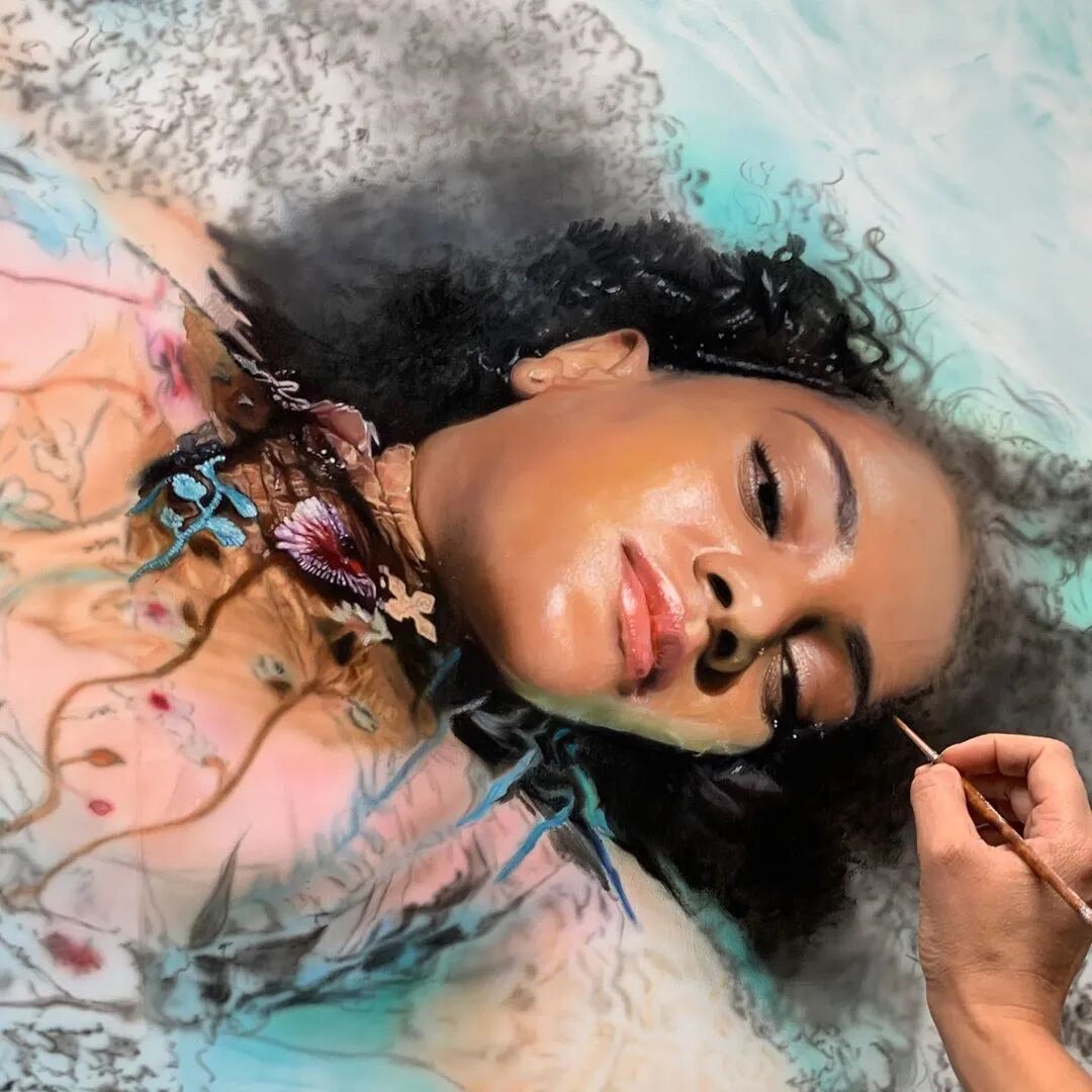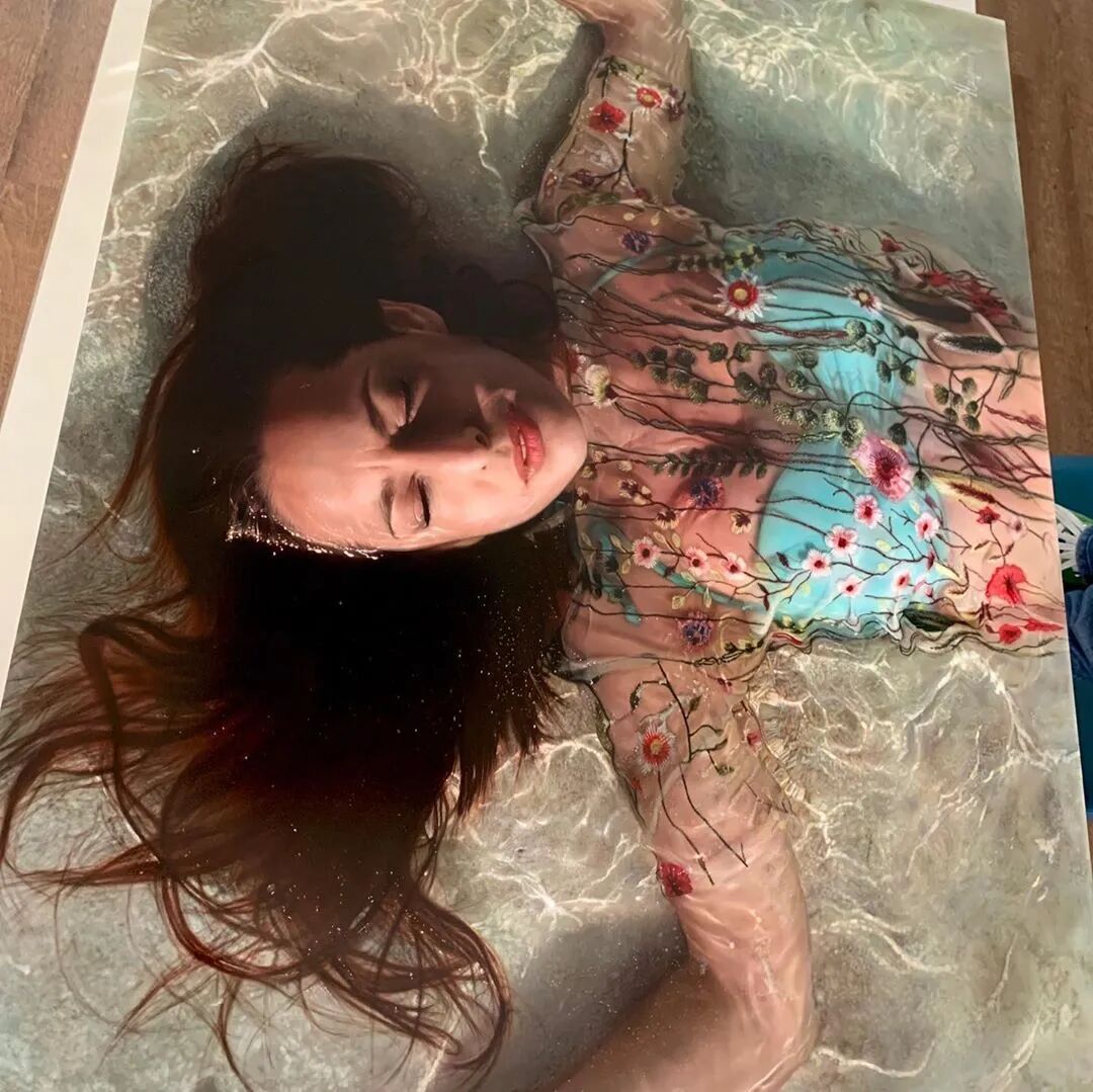 荷兰艺术家Marissa Oosterlee以逼真的绘画技巧而闻名,她能够用画笔完美绘制高精度的人物。她绘画对象大多选择置于棘手的环境中(如闪闪发光的水)来展示自己的能力。在她的系列《洗去我的悲伤》中,她将具象的绘画与对海洋的热爱相结合,描绘了半淹没在清澈水池中的女性。