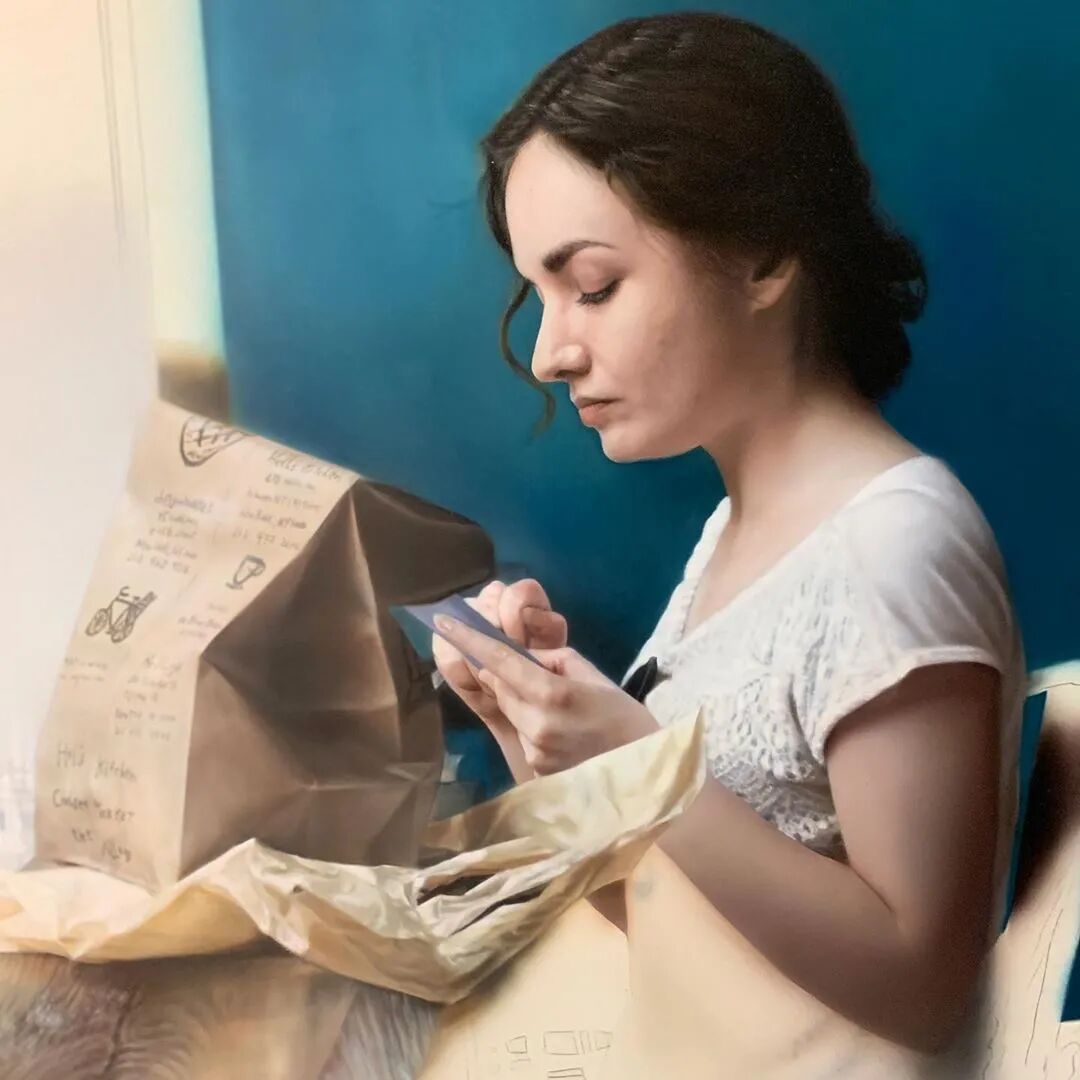 奥斯特里(Oosterlee)使用传统的油画技术精心绘制她的作品及其出色的细节。画面的内容距离很远,同时距离也很近,因为过于逼真可以清晰的看到人物的各种细节。