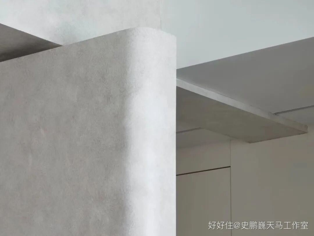 史鹏巍天马工作室:玄关墙做了不到顶的设计,与梁、与吊顶的关系,组合出建筑体块的美感。