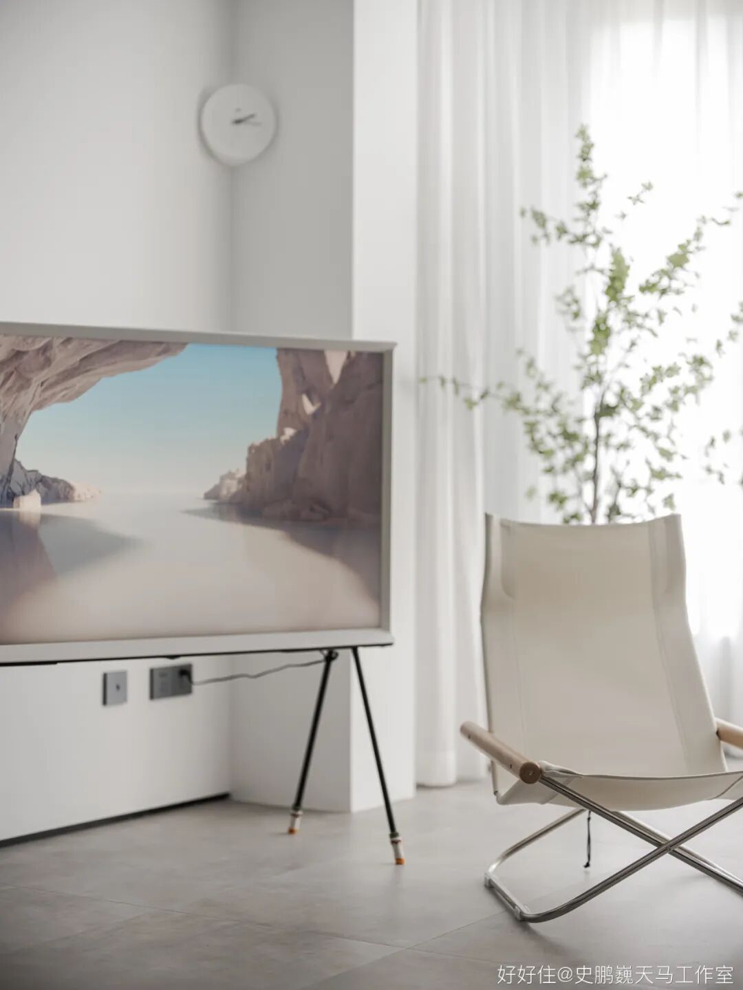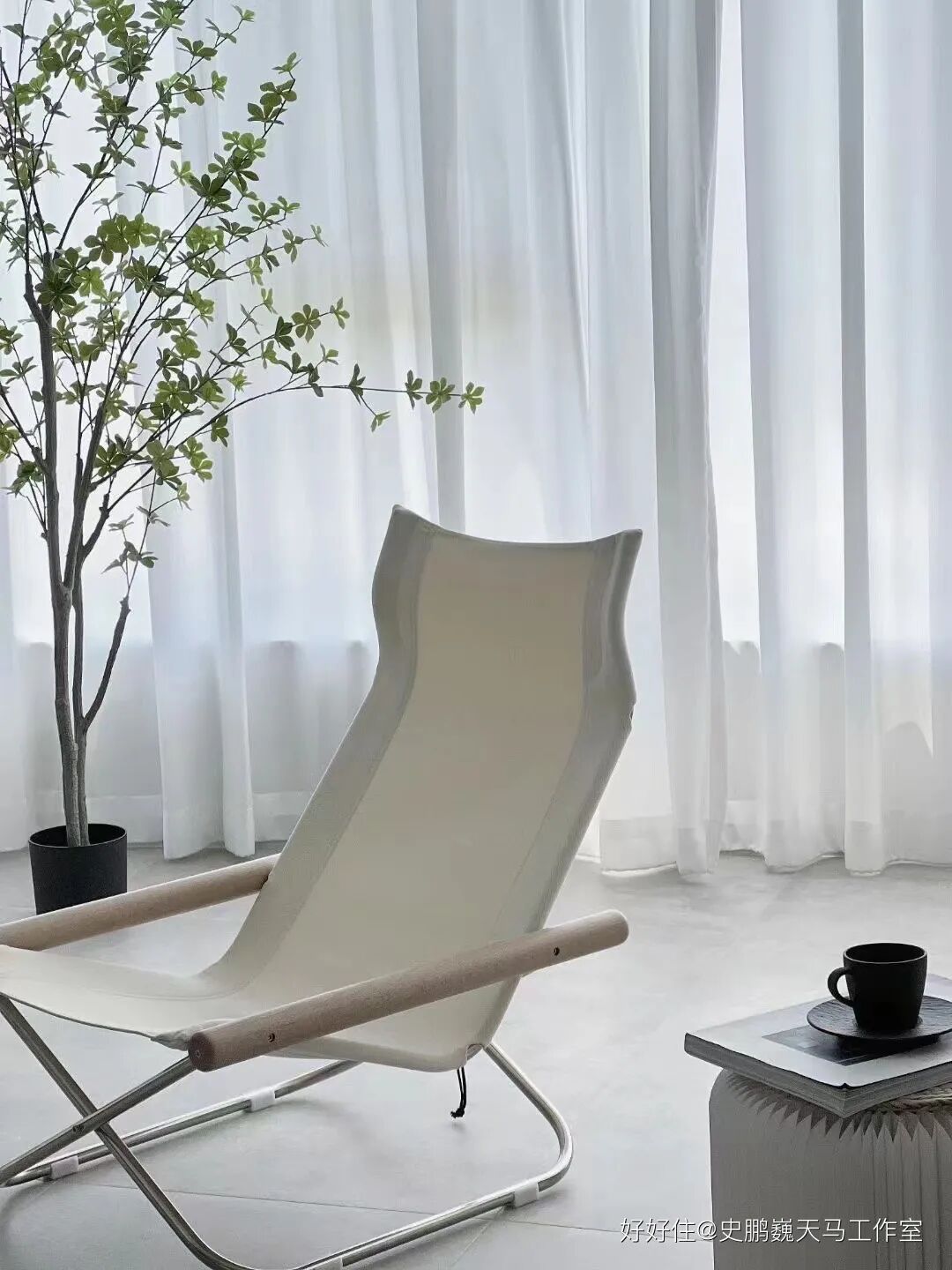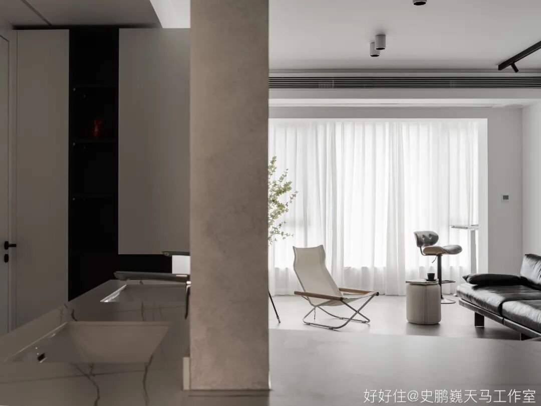 史鹏巍天马工作室:客厅整体配置上,我们就做得非常克制。甚至这把椅子,都是业主平时露营用的。慢慢住,慢慢添,家需要有主人自己的味道。设计留有余地,也是对居住者的尊重。
