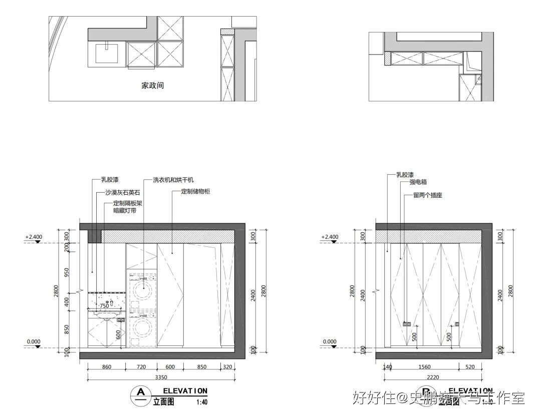 史鹏巍天马工作室:直接上干货,尺寸和材质图里都有。柜体里面留的插座是给手持吸尘器和扫地机器人用的,都有做好柜体里面的布局预设。