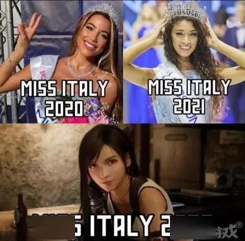 乌龙出现后,蒂法从游戏人物,一夜之间成为了意大利最有名的女性人物,不少网友纷纷进行二创,无数梗图在网上流传。